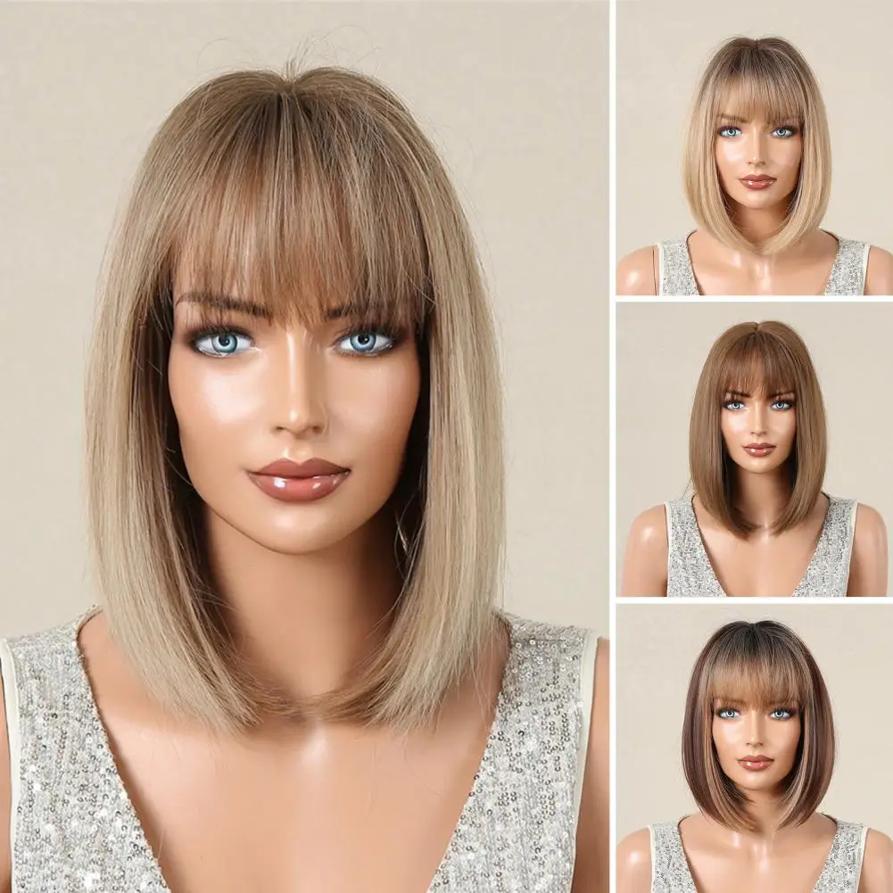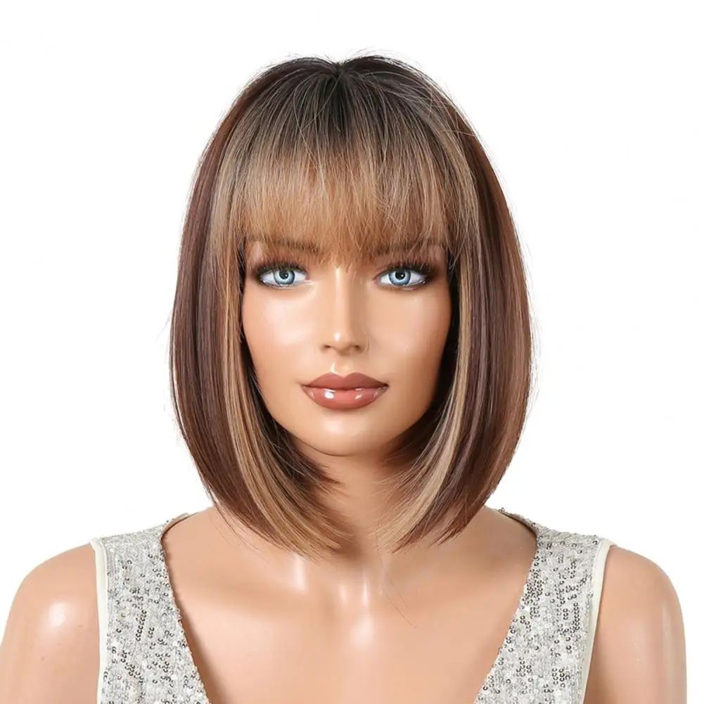 Women Wig Middle Split Smooth Glossy Gradient Color Hair Volume-Boosting Hair Extensions Natural Wig Women Long Straight Hair Wig