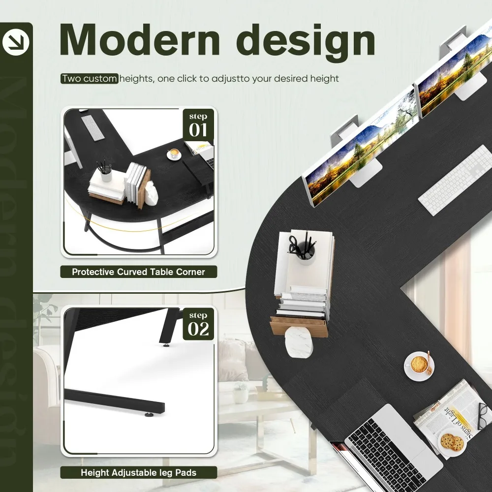 - -Effectively enhance house utilization: The giant L-shaped desktop can place varied workplace and leisure objects. The nook design lets you select the place of the desk extra freely, saving more room. There is sufficient house on the backside of the desk for the legs to relaxation or place the pc case.