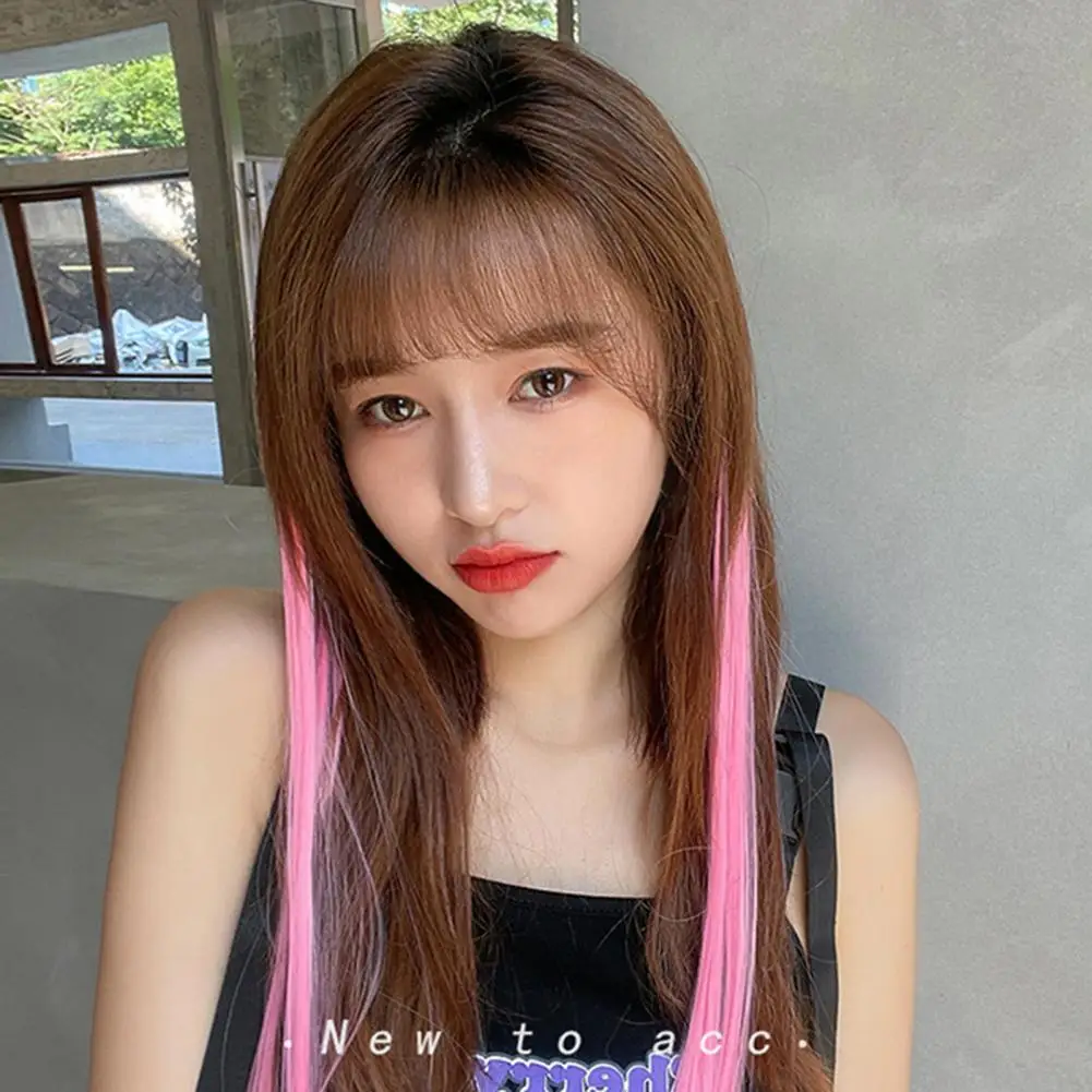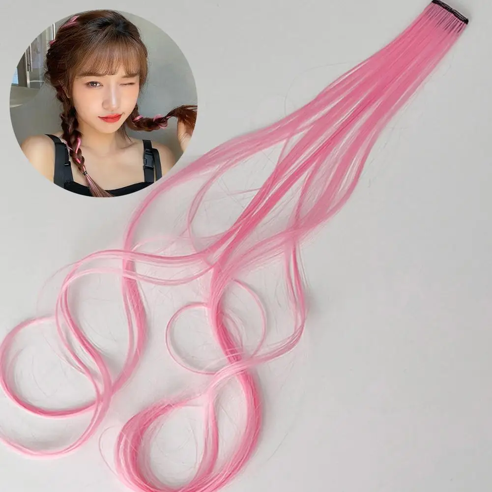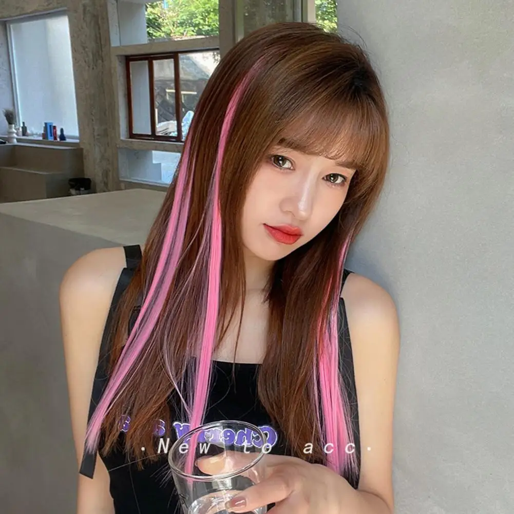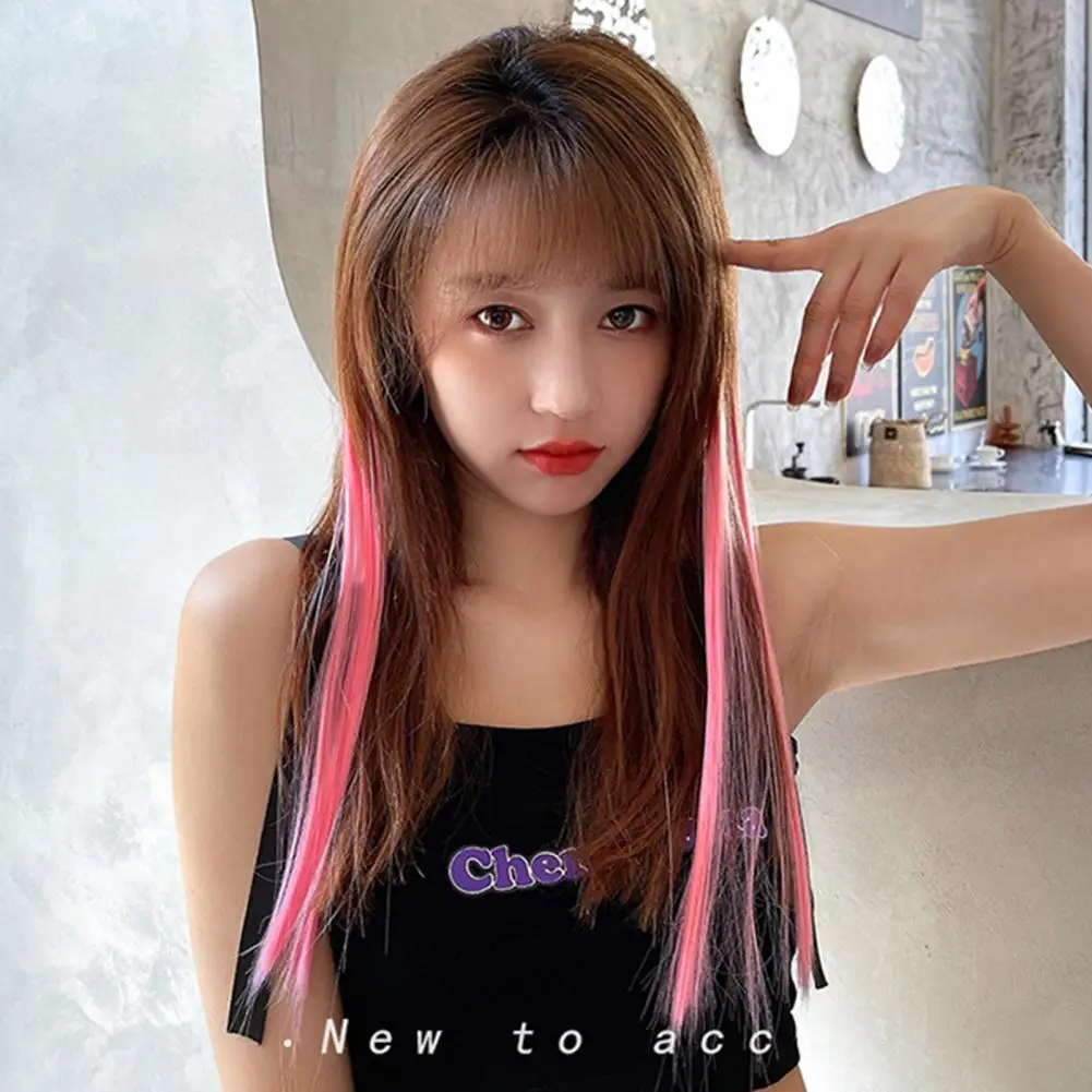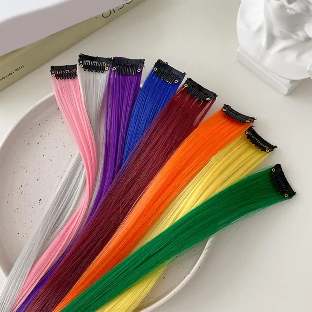 Highlight Hair Piece Straight with Clip Easy to Wear Trace-less Multicolor Makeup Tool Artificial Fiber Highlight Hair Extensions Wig for Women
