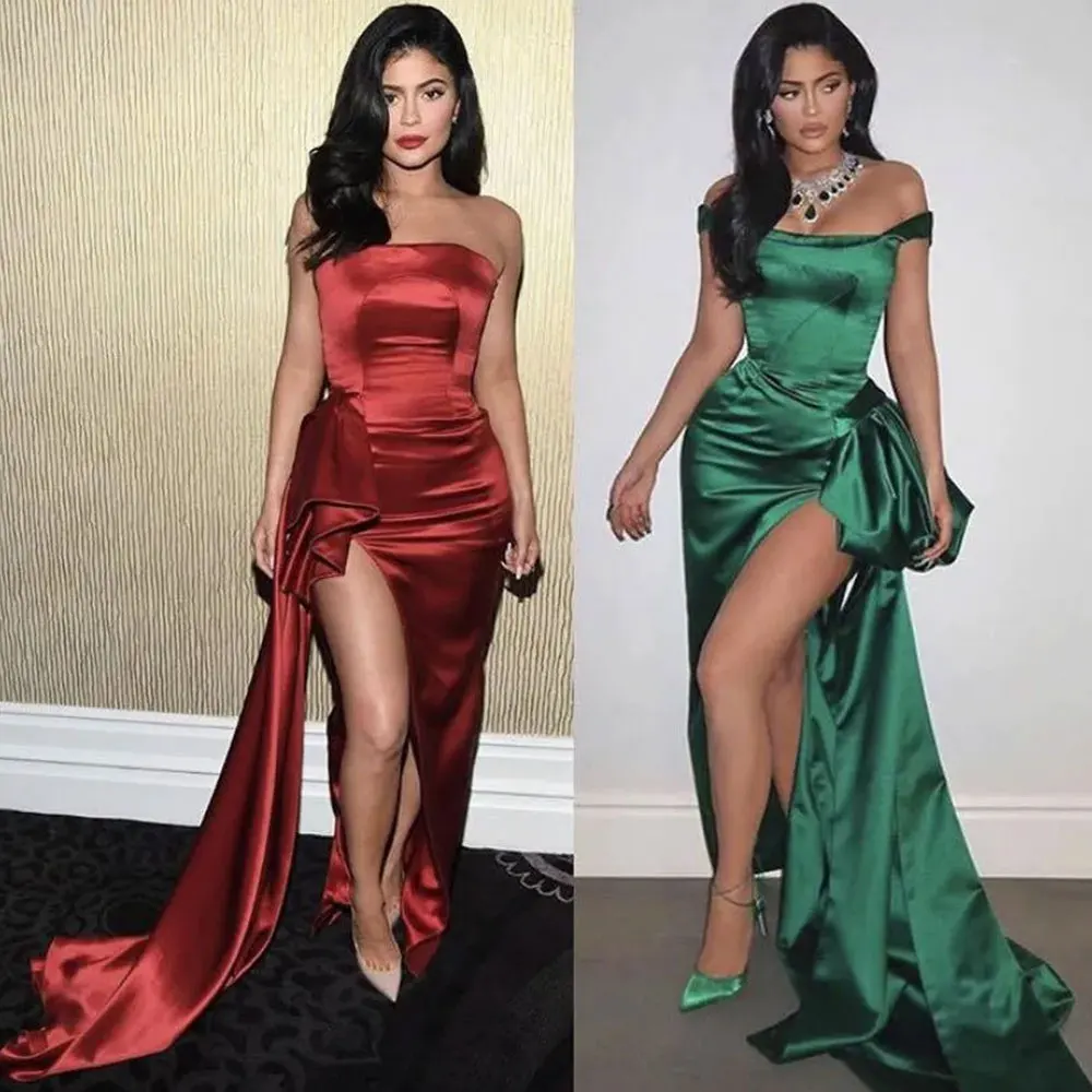 Home Uncategorized Emerald Green Mermaid Evening Dresses Sexy Off Shoulder Prom Gowns Side Slit Peplum Arabic Women Special Occasion Party Dress