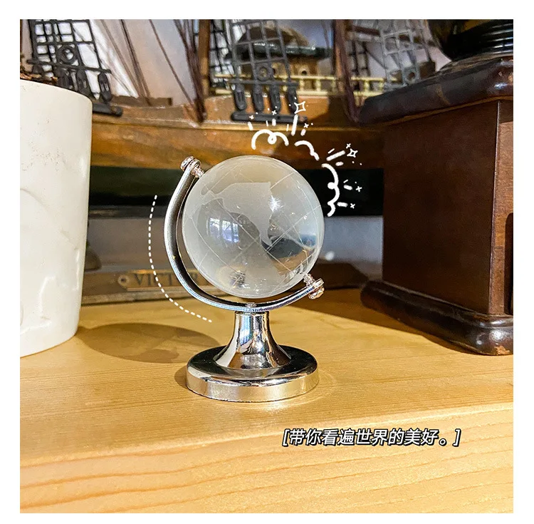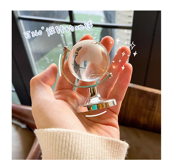 Home Uncategorized Ins Mini Crystal Globe Transparent Earth Globe Ball Glass Miniature Ornament Educational Toys Home Decor Gift Office Decoration