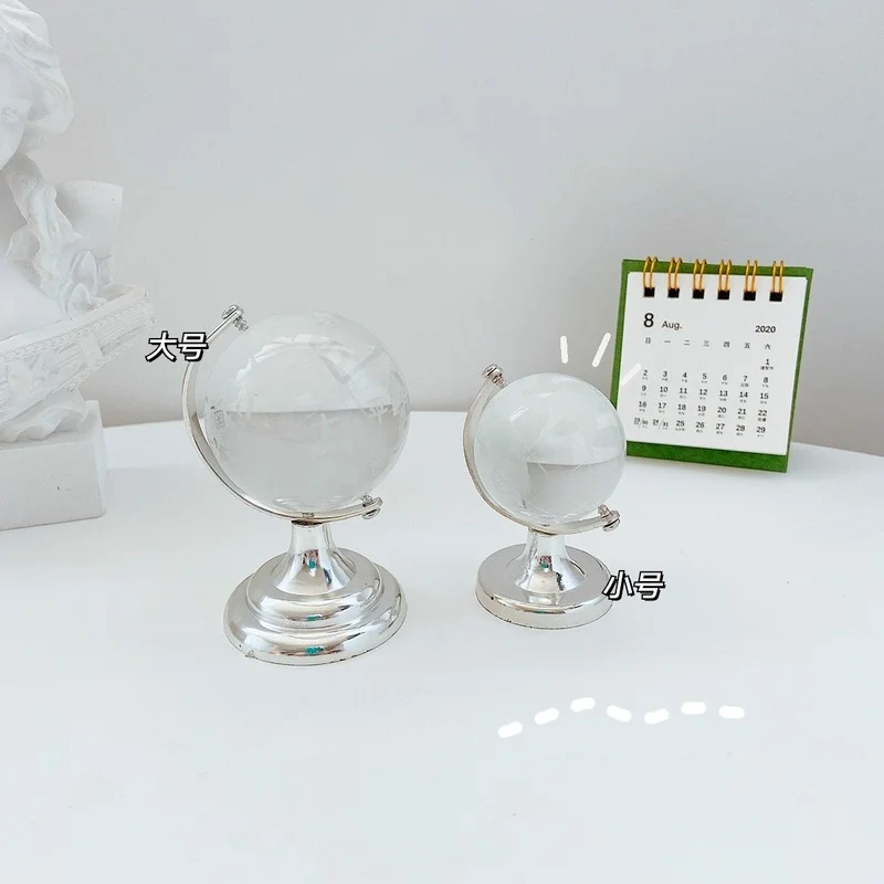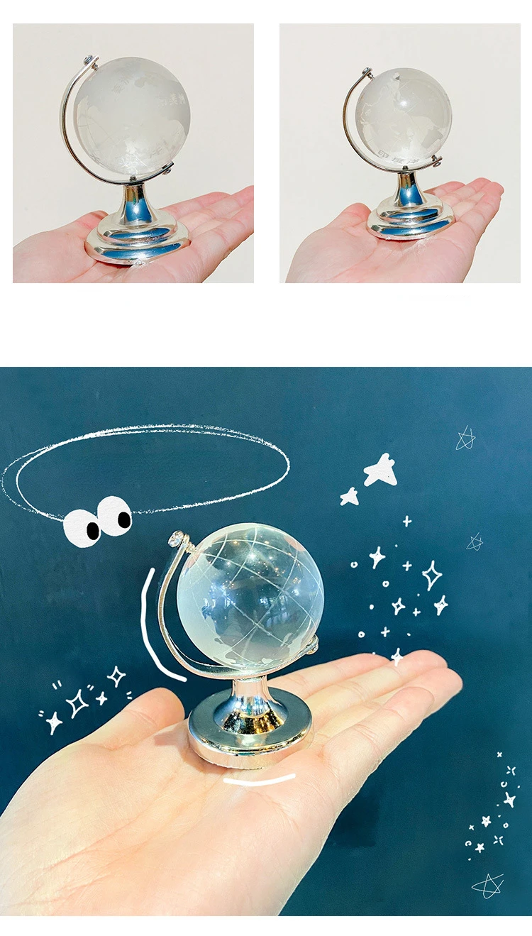 Ins Mini Crystal Globe Transparent Earth Globe Ball Glass Miniature Ornament Educational Toys Home Decor Gift Office Decoration