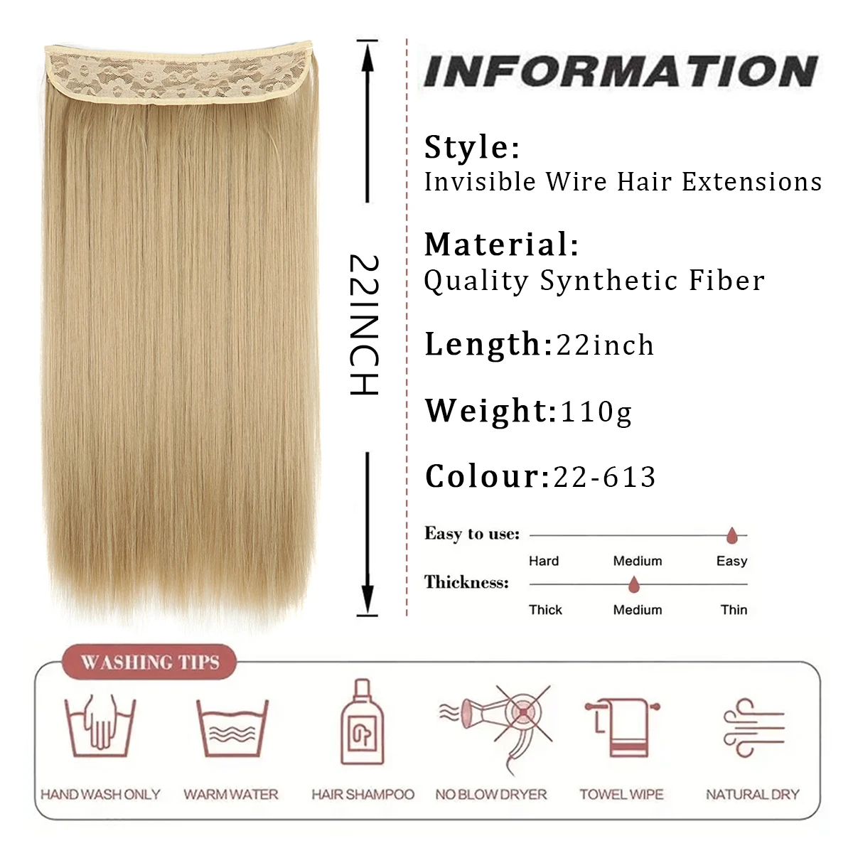 Invisible Wire Hair Extensions with Transparent Headband Adjustable Size Removable Secure Clips Female hair extensions