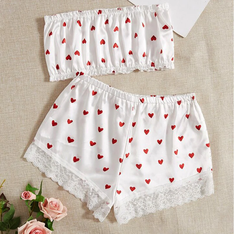 Uncategorized Lace Satin Sleepwear for Women Bra Pajamas Set Love Print Sexy Lingerie Crop tube Tops Shorts Babydoll Silk Nightwear affiliatedstore - March 19, 2024 0 Price: [price_with_discount]