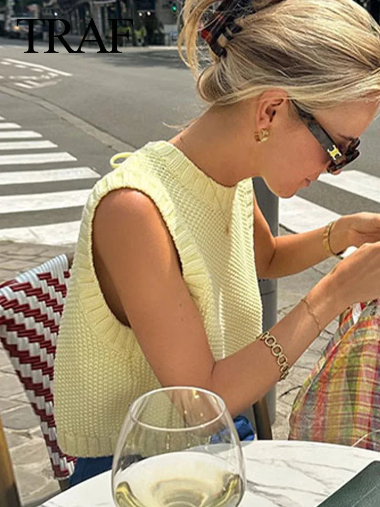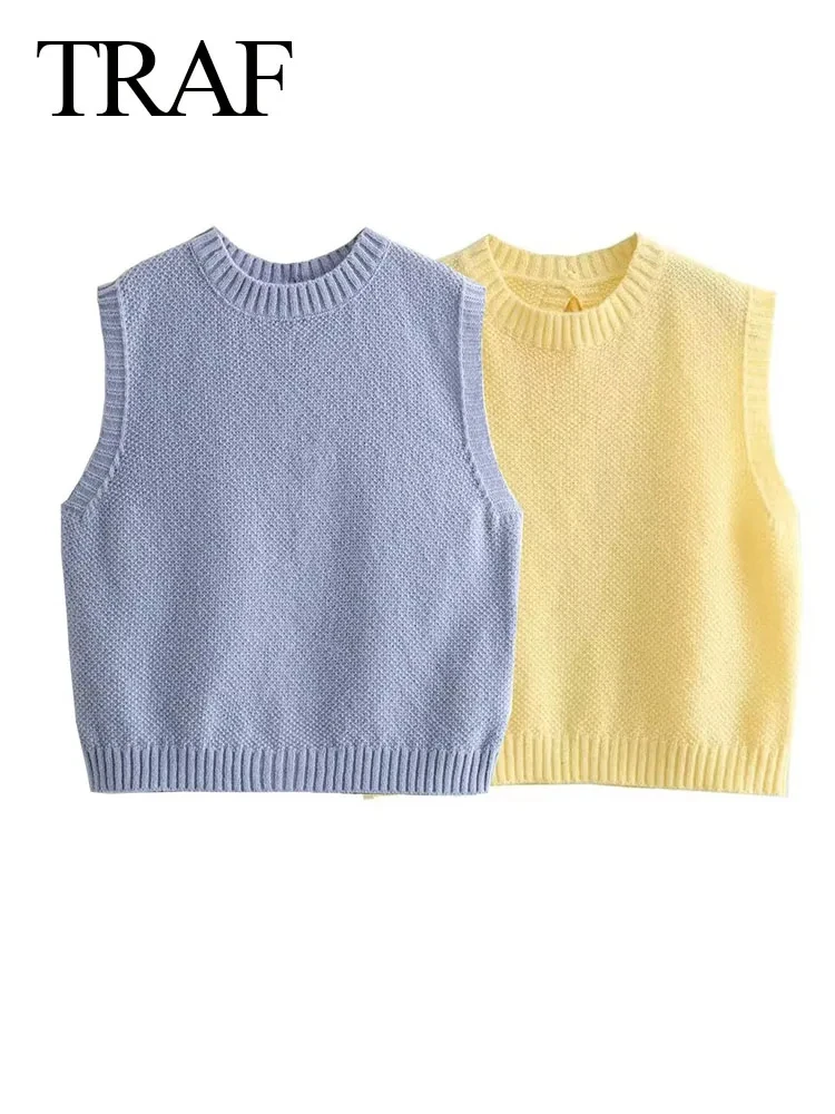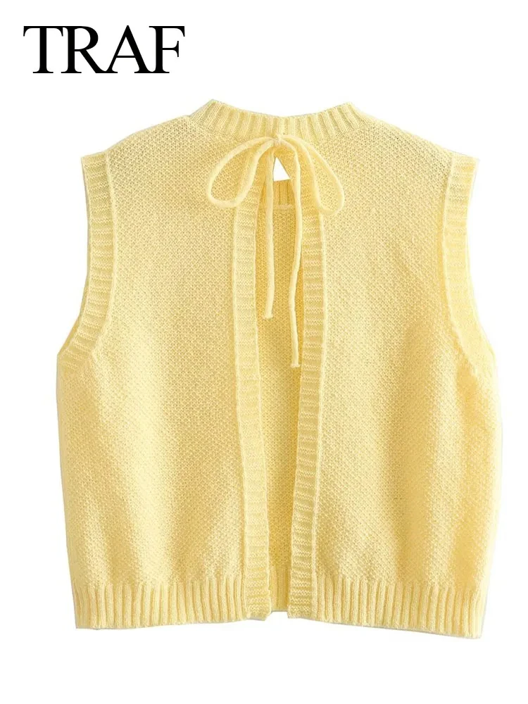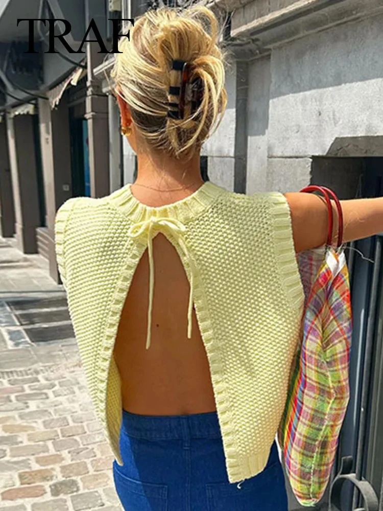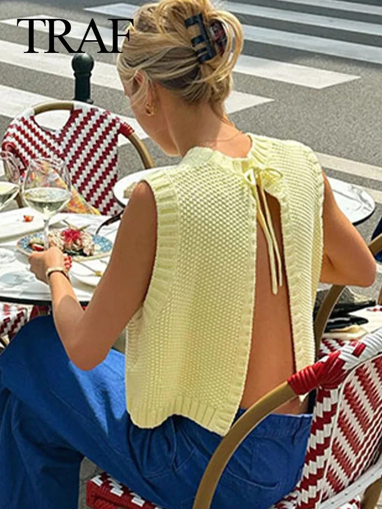 Uncategorized TRAF Women’s Fashion Round Neck Sleeveless Lace-up Knit Cropped Tank Top Woman Casual Backless Sweater Vest Vintage Streetwear affiliatedstore - March 19, 2024 0 Price: [price_with_discount]