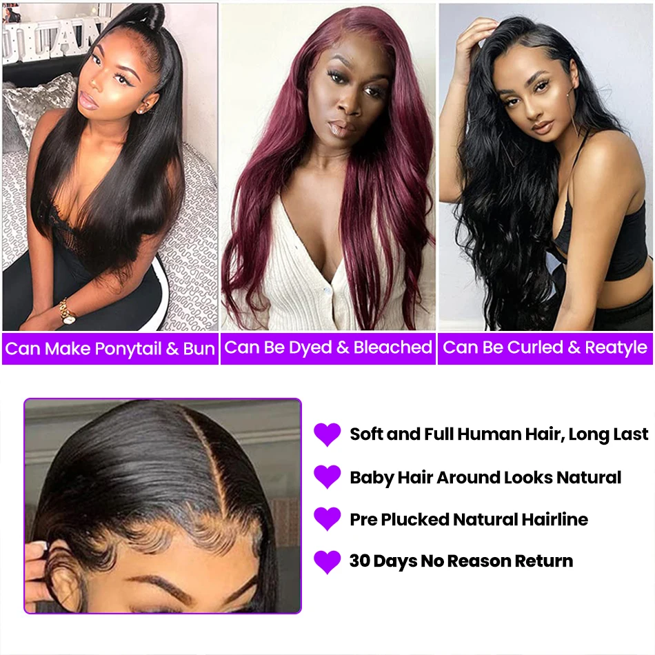HD Lace Front Human Hair Wigs Pre Plucked 13×4 Lace Frontal Wig 32 Inch Bone Straight Lace Frontal Wig 180% Density