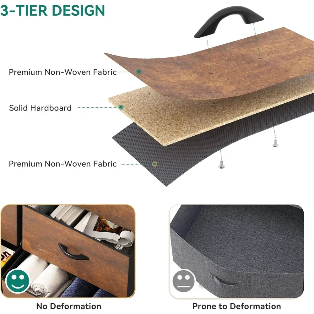- DOUBLE “X” SUPPORT: Our dresser for bed room is constructed with a sturdy metallic body, premium MDF wood high, and double X-shaped help bar on the again to offer immense stability and help; 4 adjustable, scratch-proof plastic legs preserve steadiness on uneven floor