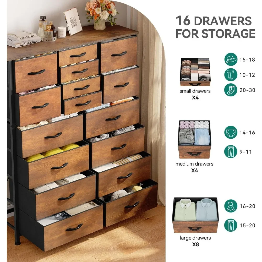 - MULTI-FUNCTIONAL DRESSER: The 16 drawer dresser is designed to optimize group and maximize storage capability with a compact footprint; Acts as a flexible entryway desk, bedside desk, couch desk, or dresser that seamlessly suits into your bed room, front room, entrance, closet, workplace, hallway, and so forth