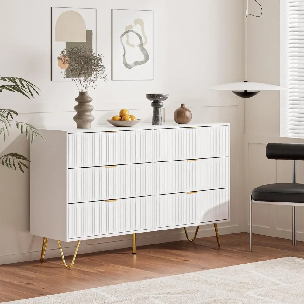 • MODERN DESIGN: Delicate steel legs, luxurious gold steel pull handles add interesting element to this contemporary dresser, making it simple to adapt to any adorning fashion and making a spacious look for your area.