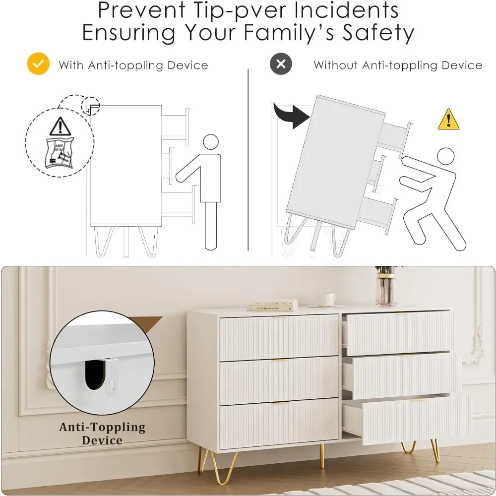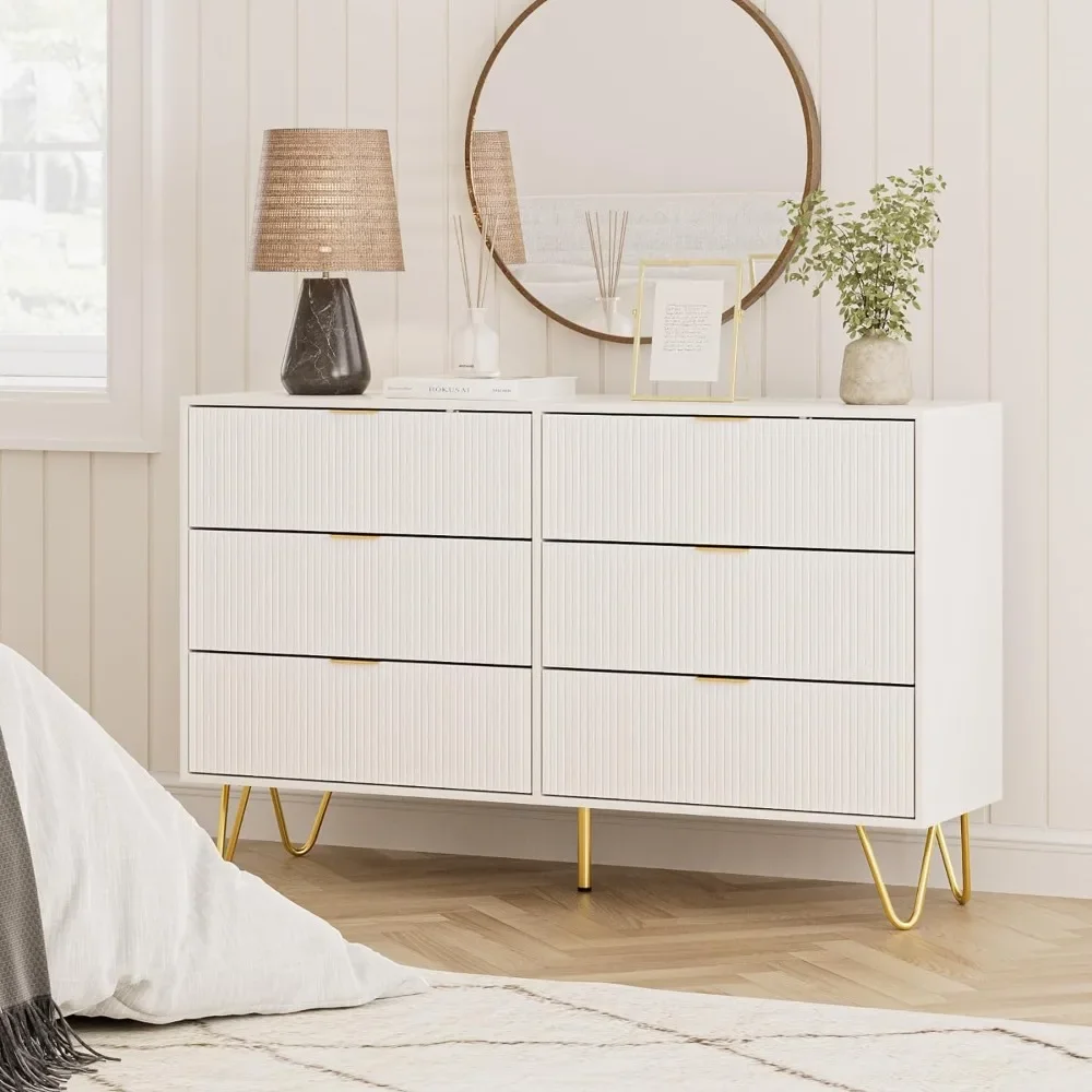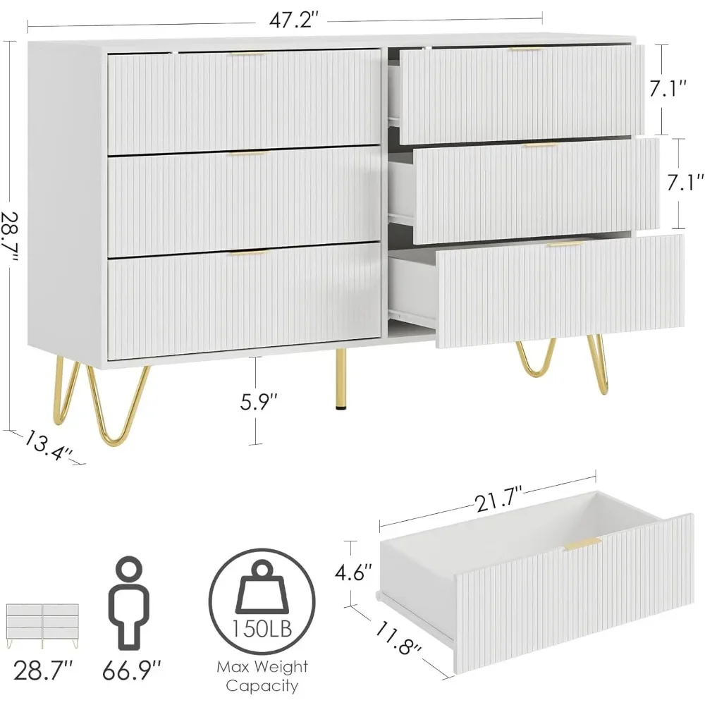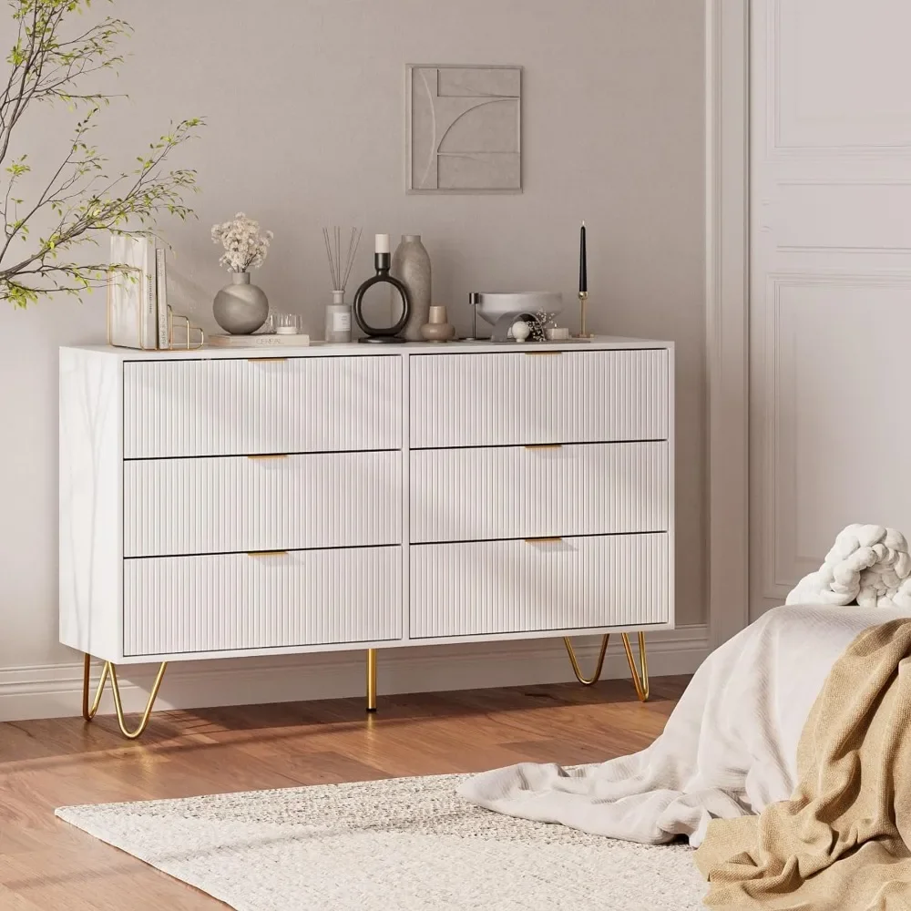 Drawer Chest Tall Storage Dressers Chest Cabinet Organizer Unit with Metal Legs Large Dressers for Bedroom 6 Drawer