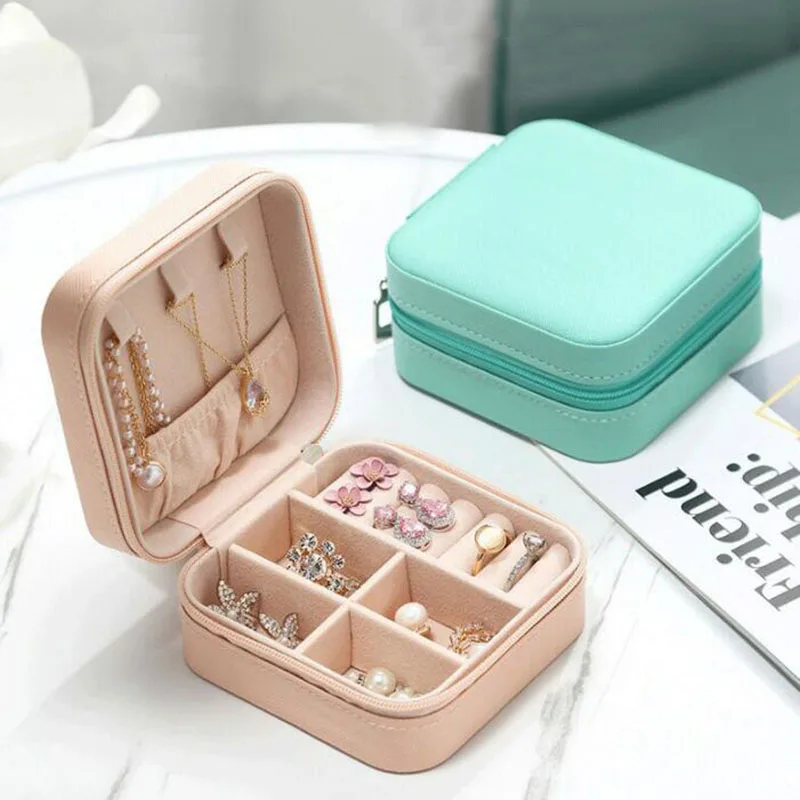 Portable Small Trinket Earring Necklace Bracelet Ring Organizer Display Case Travel Ornaments Leather Mini Jewelry Storage Box