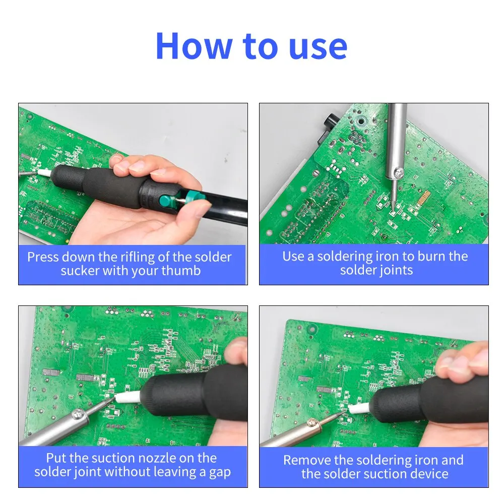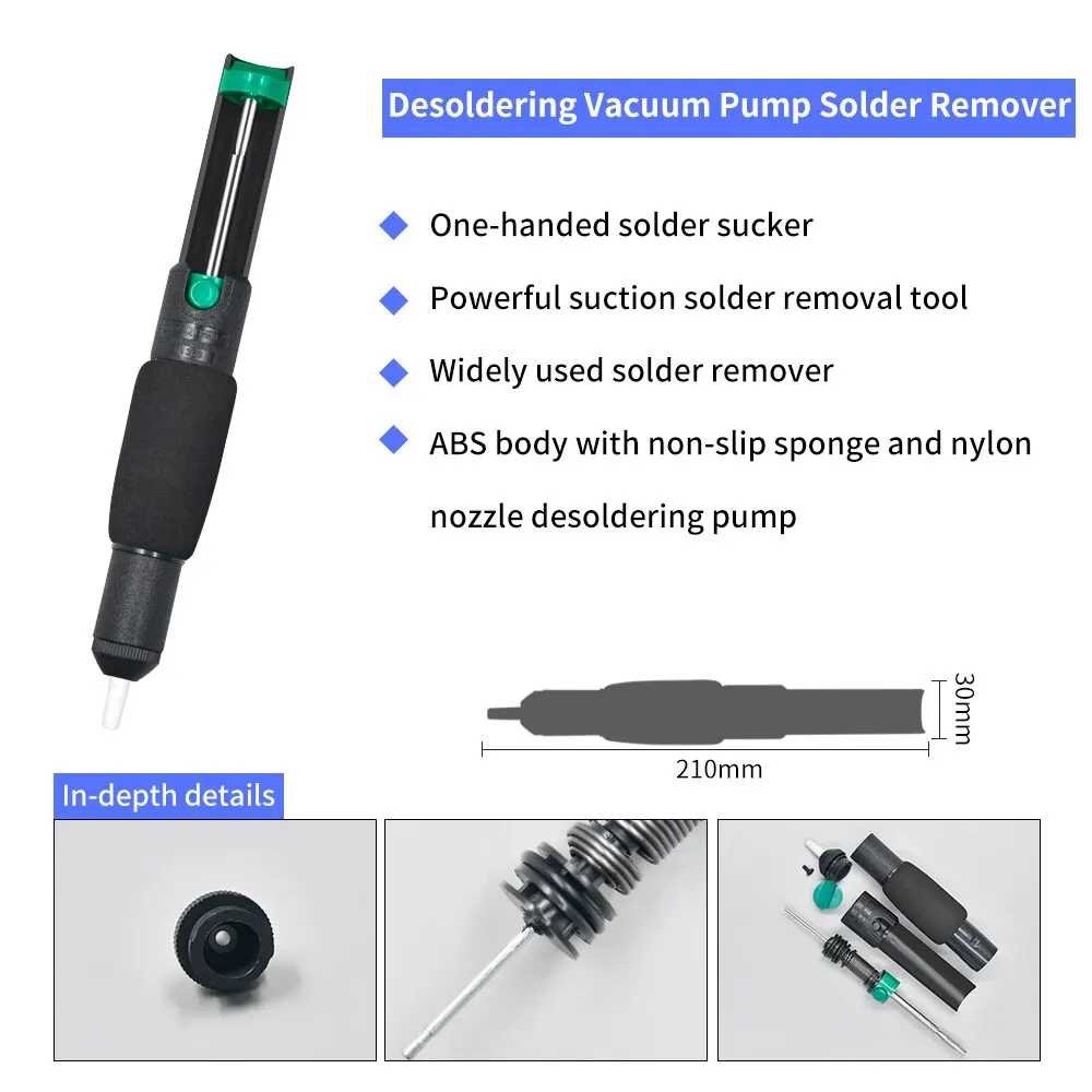 • Powerful Desoldering :The Pump Solder Sucker is a robust desoldering instrument that may simply take away solder from circuit boards and different digital parts.
