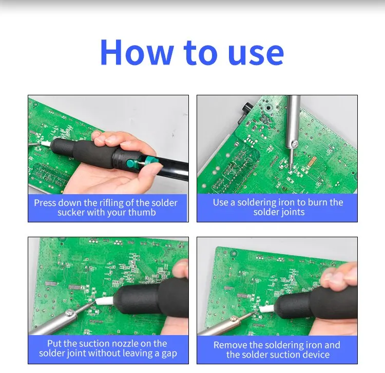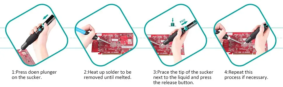 [One-handed solder sucker with powerful suction] whether or not you might be proper or left-handed, you possibly can utilizing thedesoldering pump by simply cocking it and urgent thetrigger button with one hand when you find yourself prepared, thedesoldering pump designed with double ring doubleopen and "Vacuum"Button, which make the sucking energy superior.
