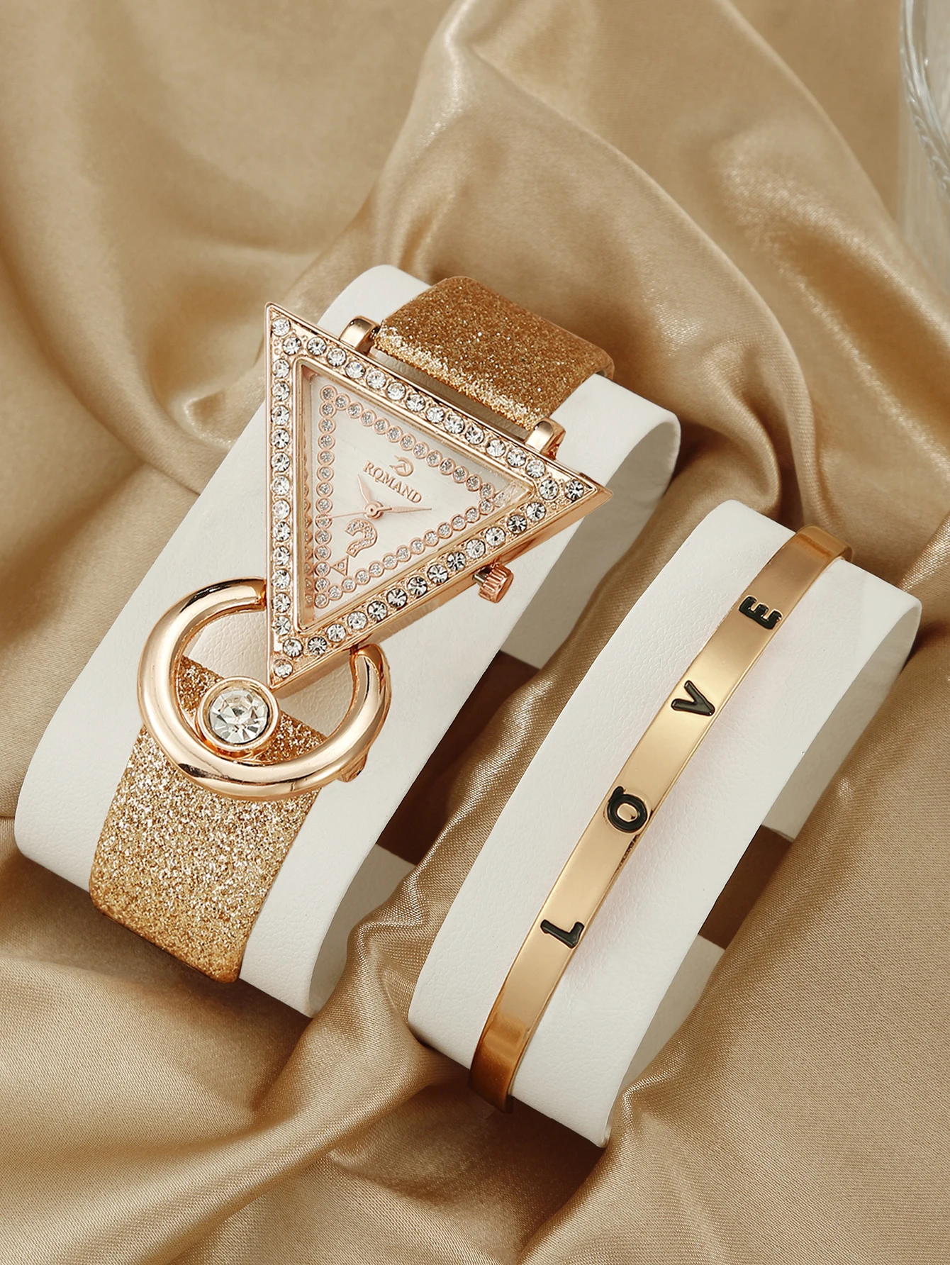 Simple and Personalized Light Luxury Women’s Quartz Watch+3 Piece Jewelry Set