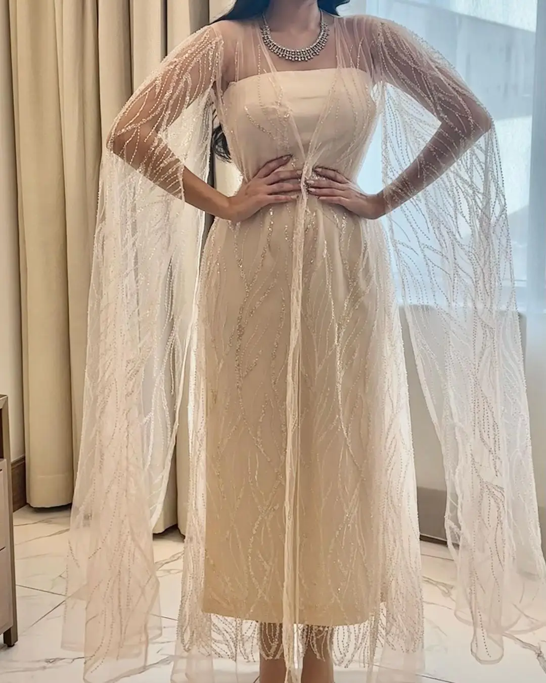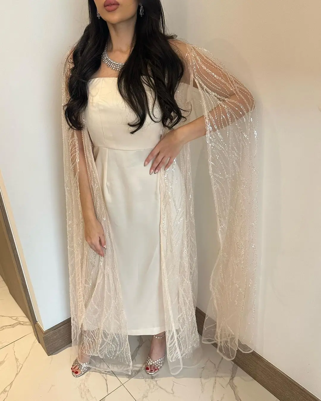Home Uncategorized Striaght Strapless Prom Dresses with Jacket Sequined Ankle Length Formal Party Dress Special Occasion Dress
