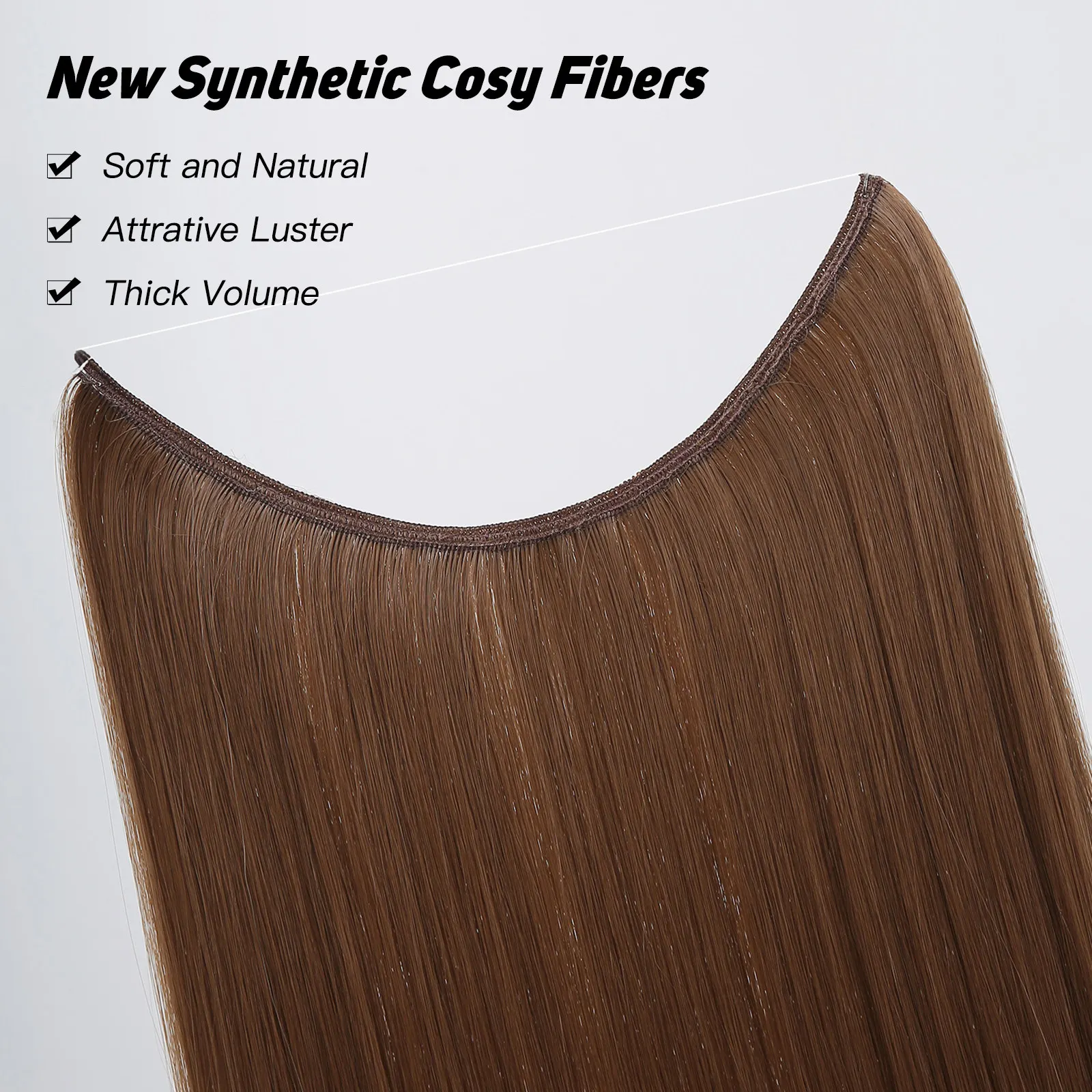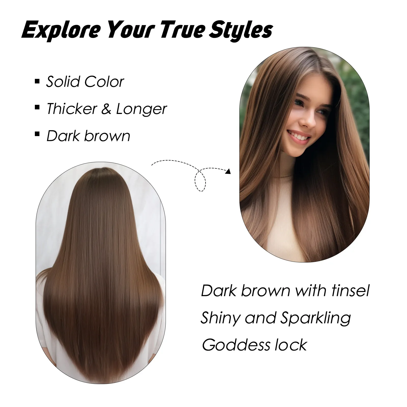 Synthetic Long Straight No Clip Hair Extension One Piece Hairpiece for Women Brown Fish Line False Hairpiece Hair Daily Use