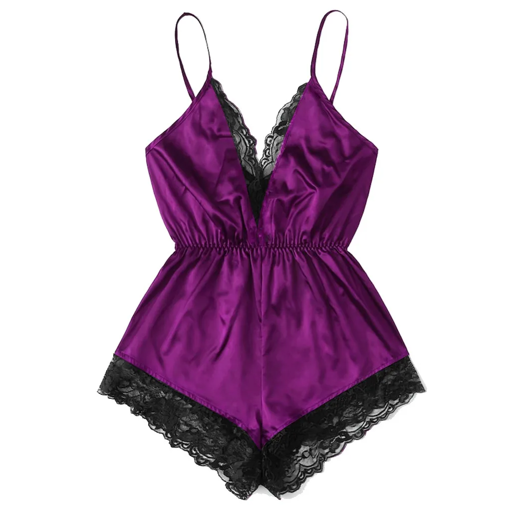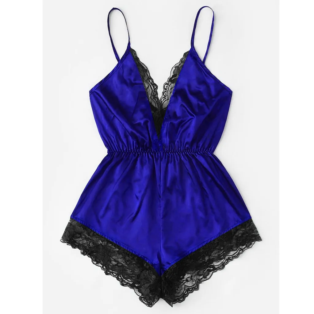 Fashion Women Sexy Lingerie Girl V-neck Lace Splice Bodysuit Sleepwear Bodydoll