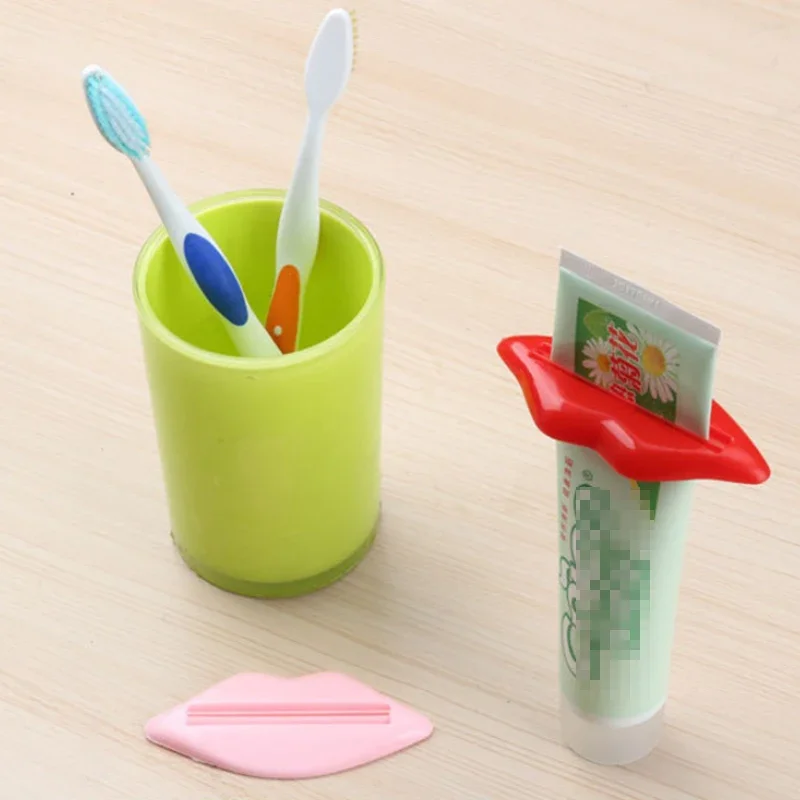 This is a straightforward squeeze the toothpaste dispenser.