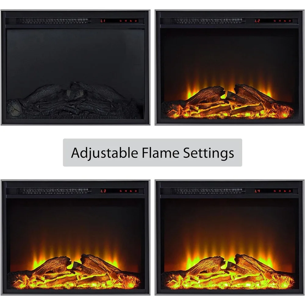 - TV Stand combines sturdy laminated MDF and particleboard with a 23″ steel electrical hearth insert.