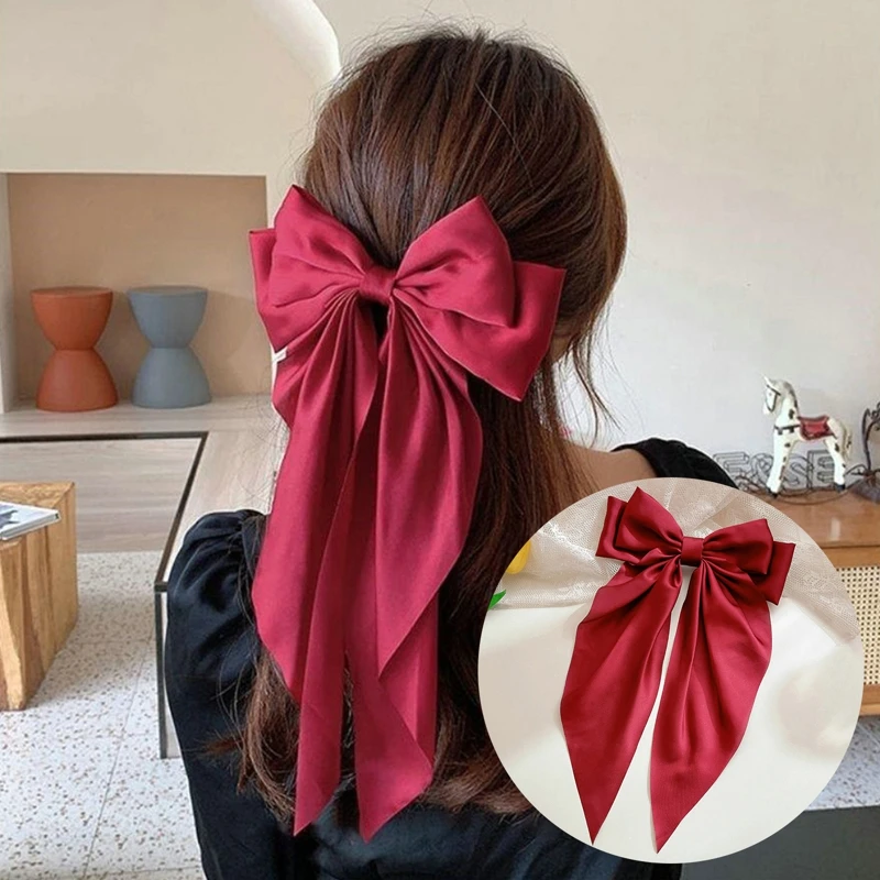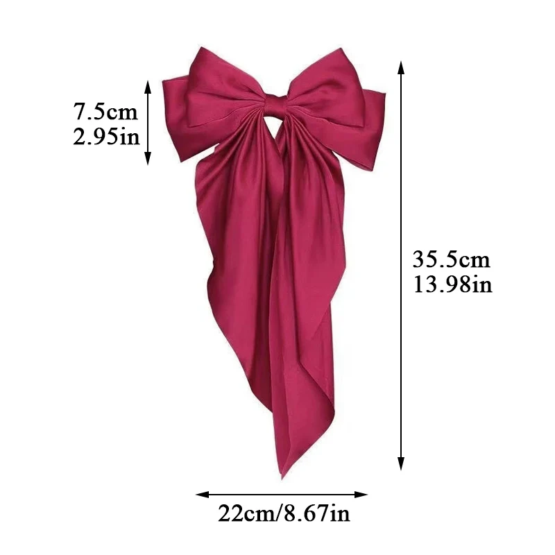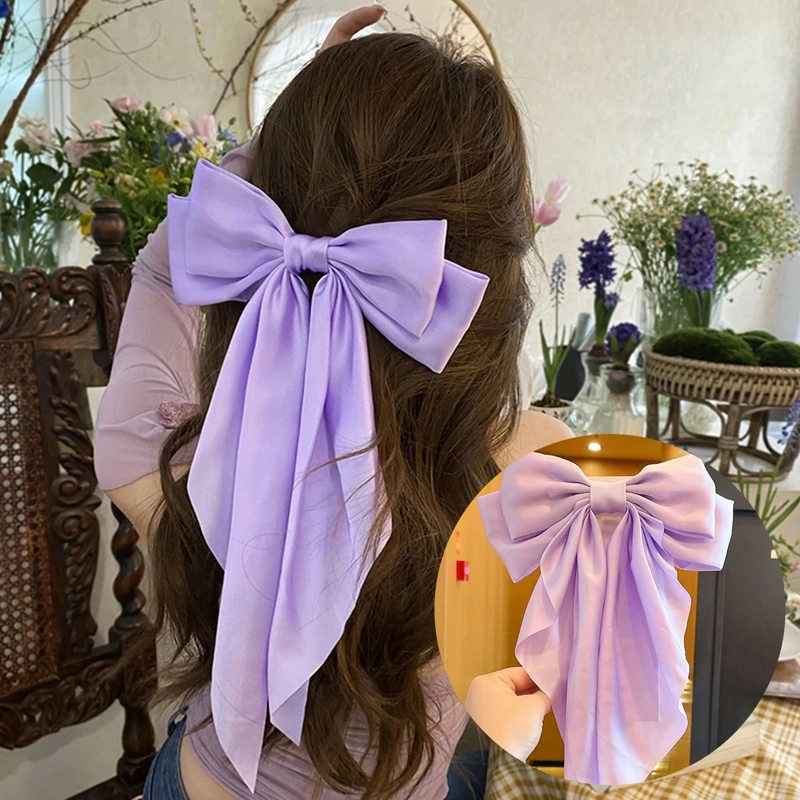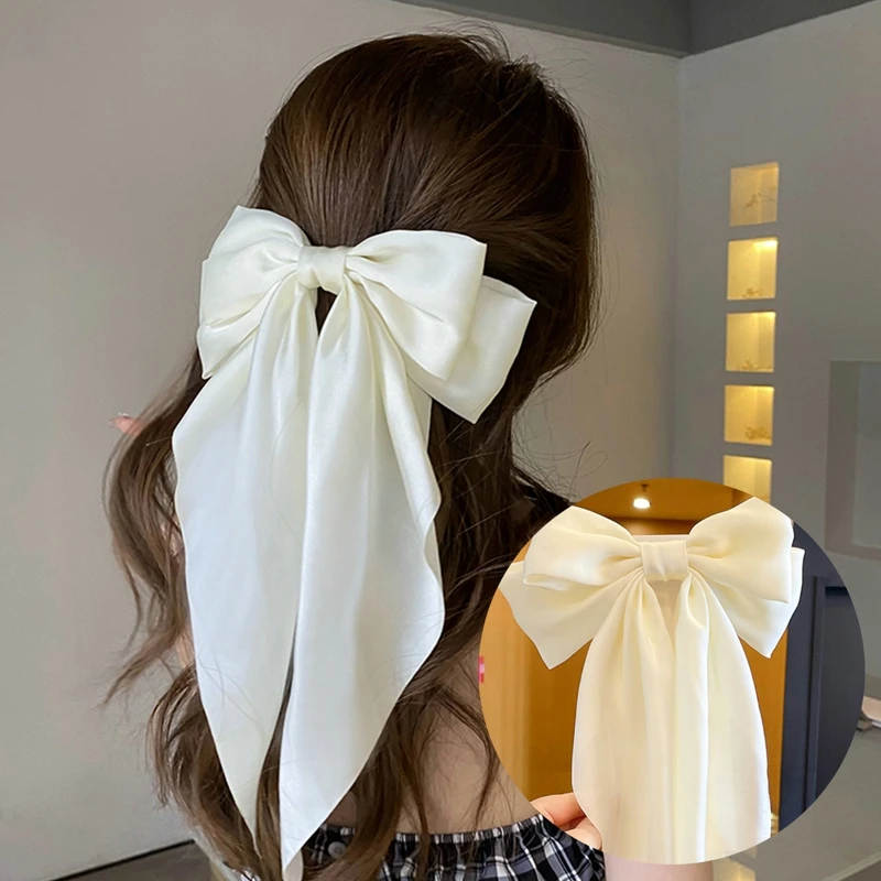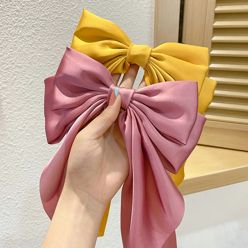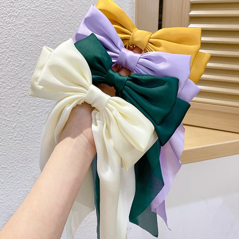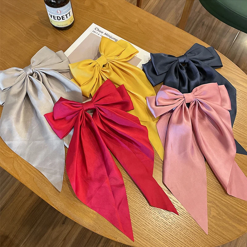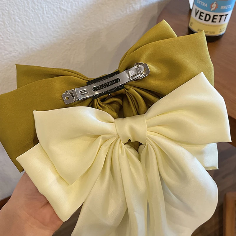 Elegant Large Bow Ribbon Hair Clip for Women Fashion Simple Solid Satin Spring Clip Ponytail Bow Hairpin Girls Hair Accessories