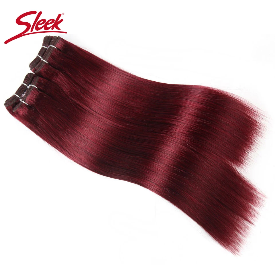 Sleek Brazilian Yaki Straight Hair 4 Bundles Deal 190G 1 Pack Human Hair Weave Bundles Non Remy Red/Burg/1B/2/4 Hair Extension