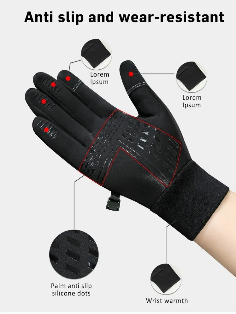 (*1*) • Waterproof Material :Crafted with waterproof materials, these gloves defend your fingers from water and moisture, enhancing their sturdiness and longevity.