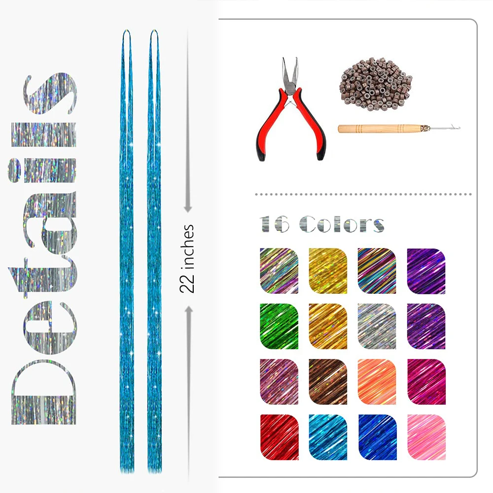 Uncategorized 16 Colors Shiny Threads Glitter Hair Tinsel Kit Gold Silk Hair Glitter String Extensions Accessories For Women Headdress affiliatedstore - March 22, 2024 0 Price: [price_with_discount] Sparkle Shiny Hair Tinsel Rainbow Silk Hair Extensions Long Dazzles Women Hippie For Braiding Headdress 110cm 120Strands/Pack