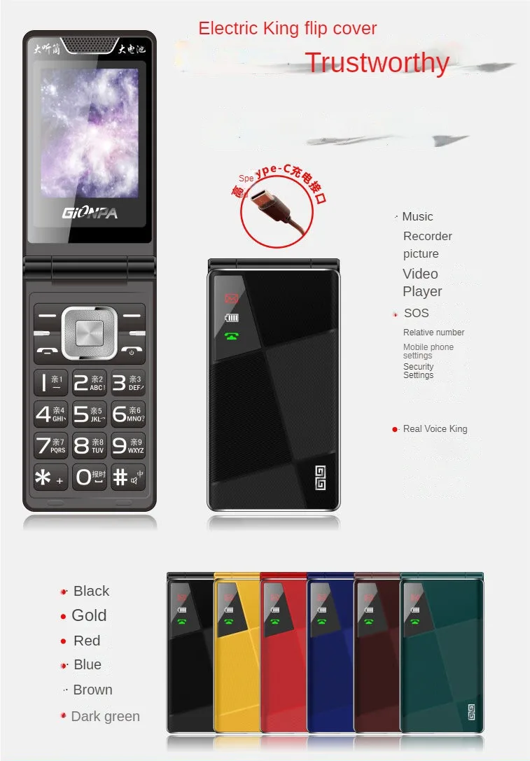 7.Functions: NO Vibration/Strong Light Torch /Loud Speaker/Blacklist/Calculator/Alarm/Calendar/Sound Recorder/Audio Player/Video Player/…and so forth.