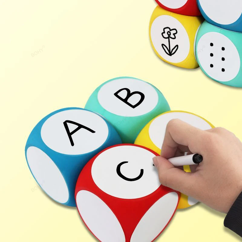 DIY Blank Dice Write on/Wipe Off Dice Portable Erasable Blank Game Cubes for Classroom Teaching Dry Erase Educational Dice