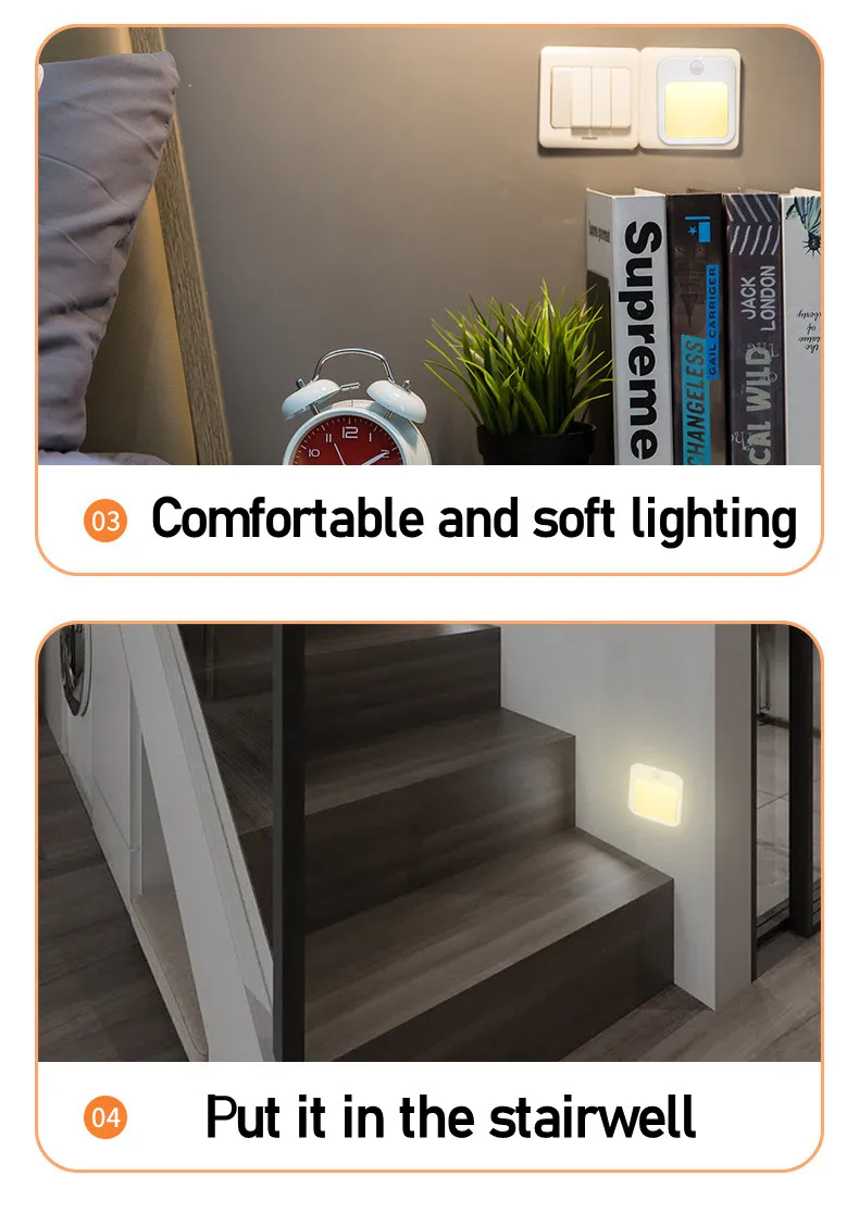 Motion Sensor LED Night Lights EU/US Plug Dimmable Cabinet Light For Baby Bedside Bedroom Corridor Wireless Night Lamp Lighting