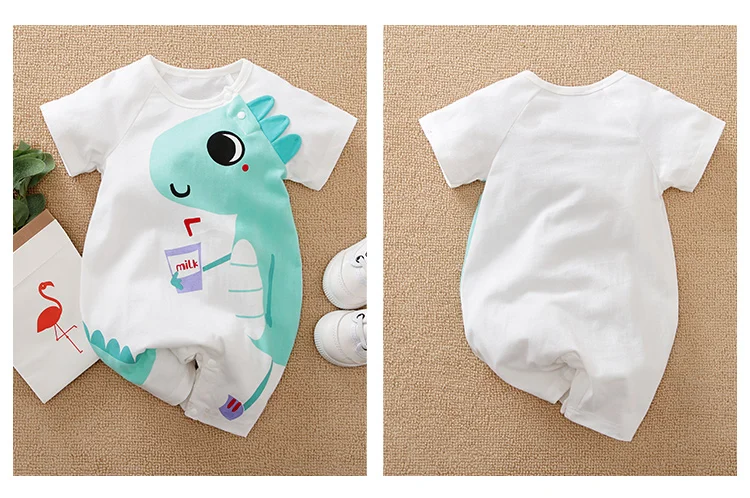 Newborn Clothes Cute Cartoon 3d Dinosaur Cotton Comfortable And Soft Summer Boys And Girls 0-18 Short Sleeved Baby Jumpsuit