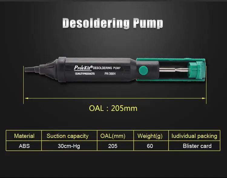 100% authenticPro'sKit Pro'skit 8PK-366N-G Suction Tin Solder Suckers Desoldering Gun Soldering Iron Pen Hand Tools Desoldering Pump
