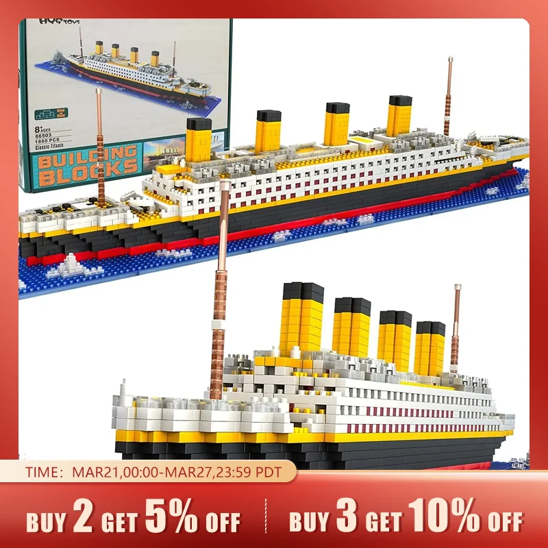 • 1860Pcs Titanic Toy Ship Model Building Bricks :This set consists of 1860 items to construct an in depth mannequin of the Titanic, offering hours of leisure and problem.