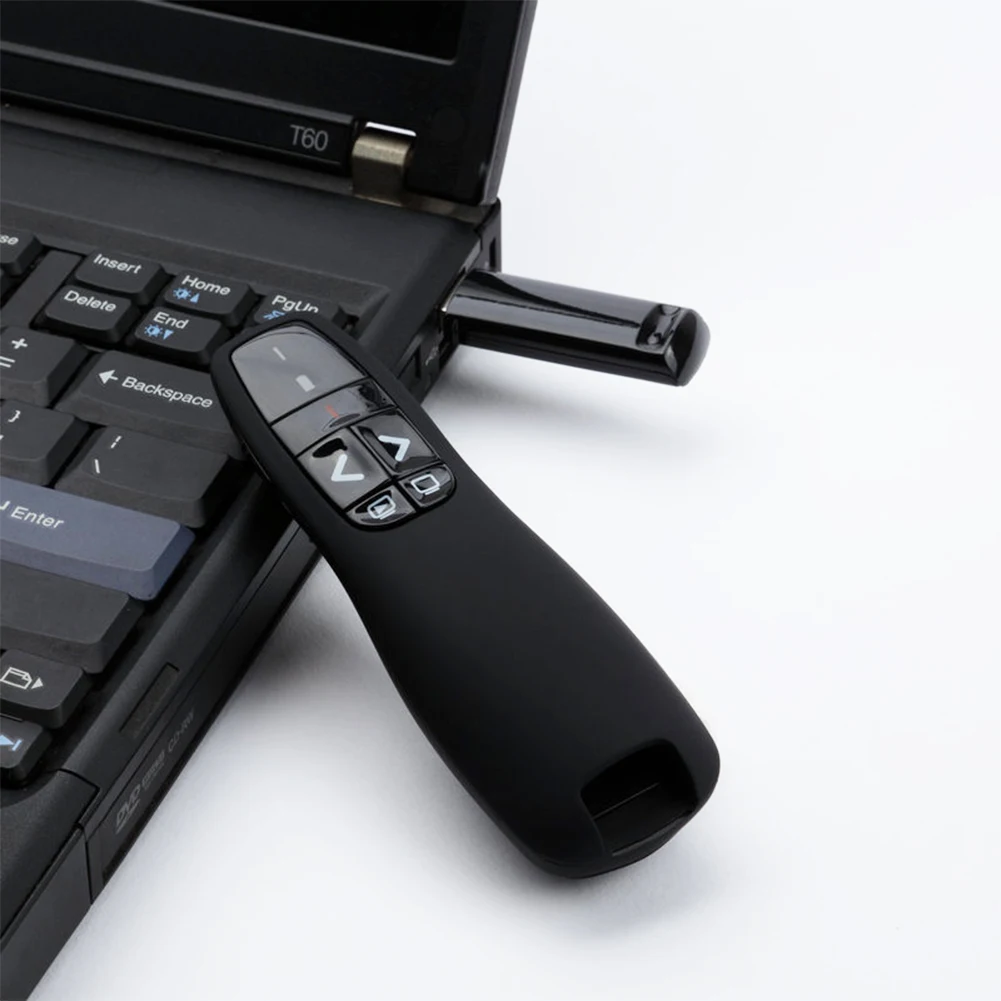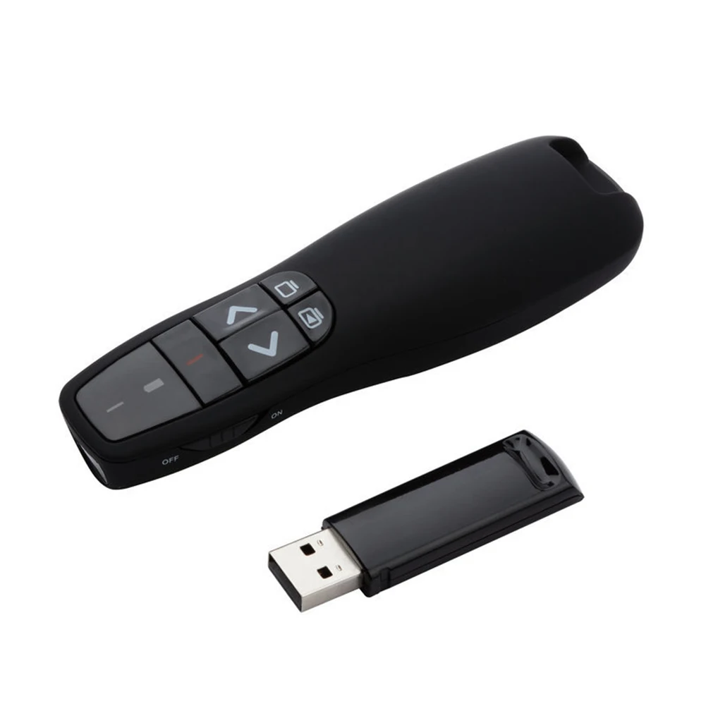 This 2.4 GHz Wireless Remote Red Laser Pointer Presentation Black is small and beautiful, transportable and with richer functions.
