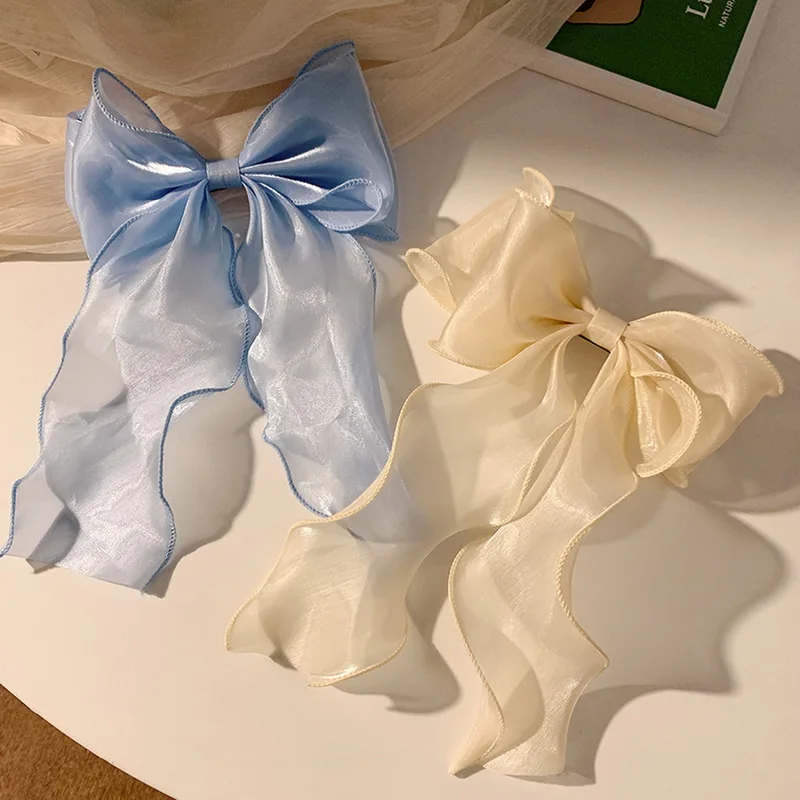 2024 Korean Hair Clip Multi-Layer Pearlescent Ribbon Bow Spring Hairpins Women’s Creative Chiffon Clips Girls Hair Accessories