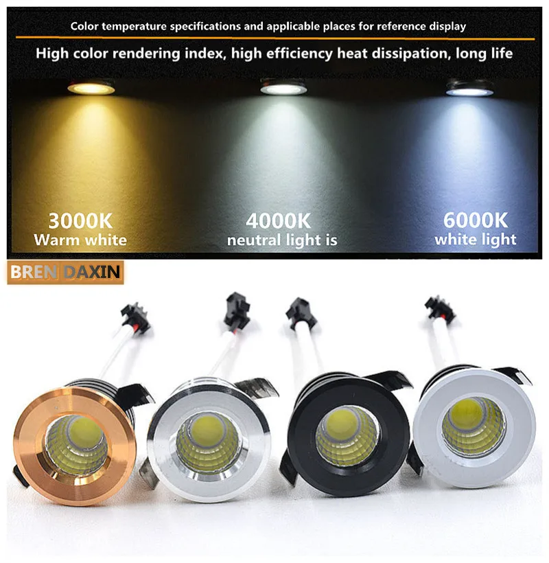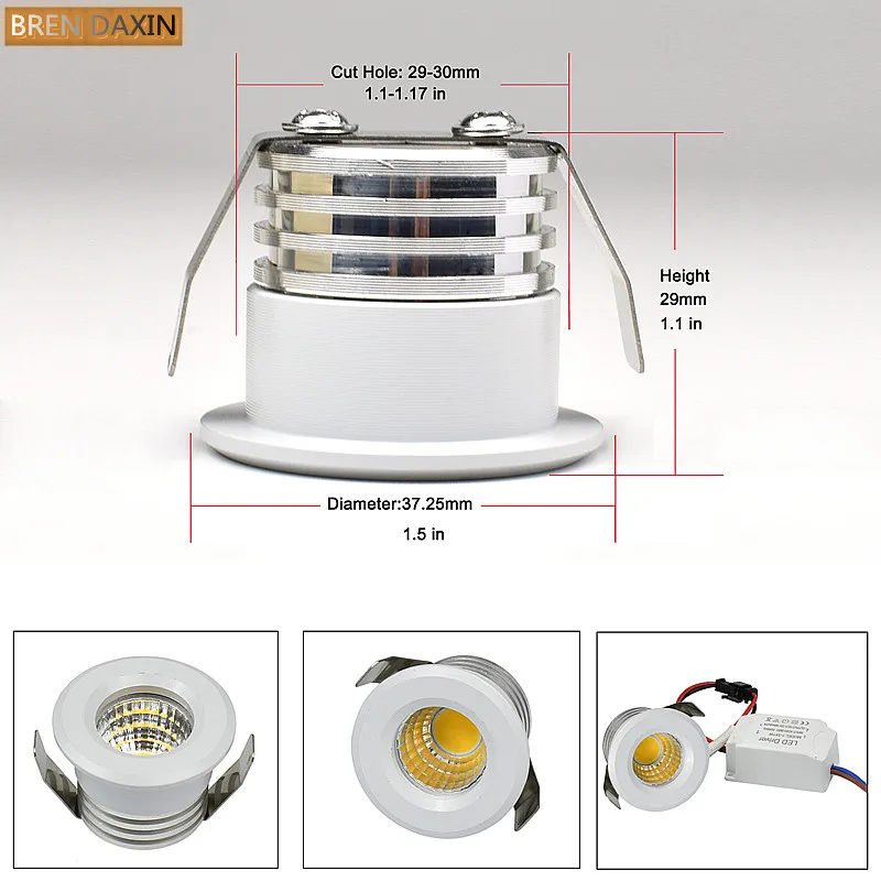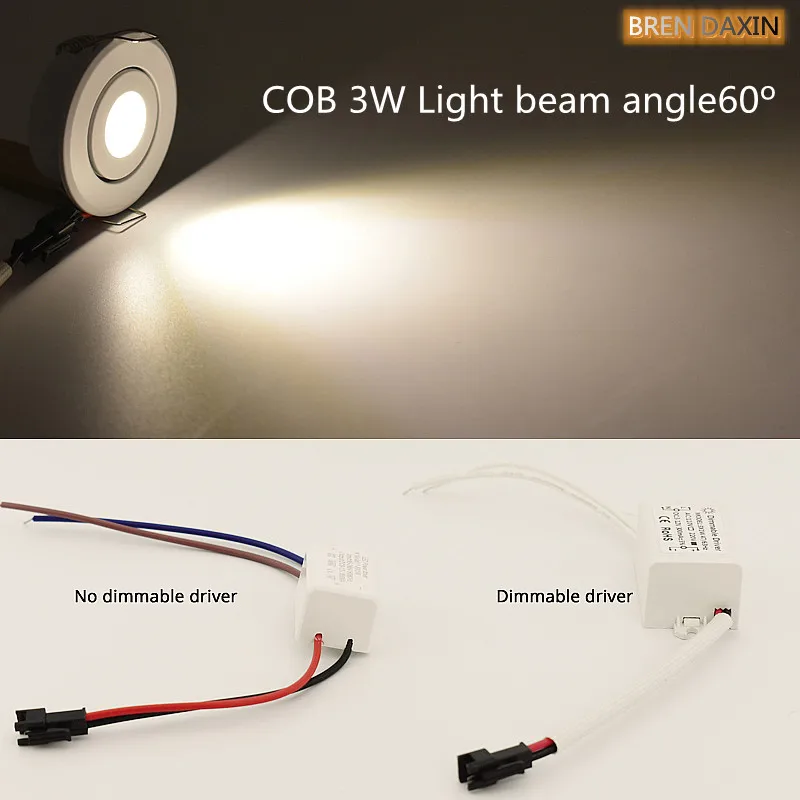 Small Recessed Ceiling LED Spot Light COB 3W 110V 220V Dimmable Driver Included for home showcase cabinet hotel skirting and so forth