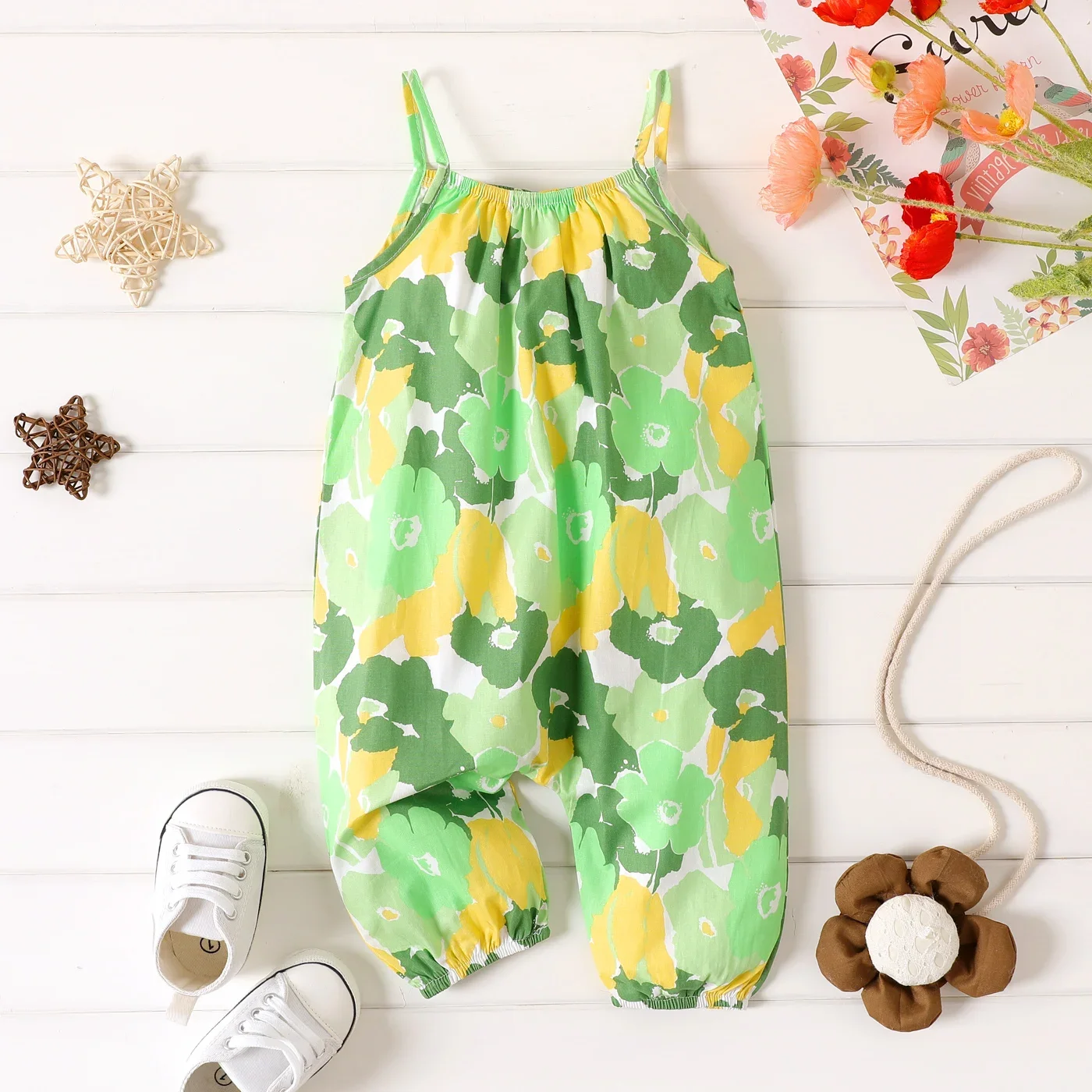 PatPat 100% Cotton Baby Girl All Over Floral Print Cami Jumpsuit Suitable for Summer Season Soft and Comfortable