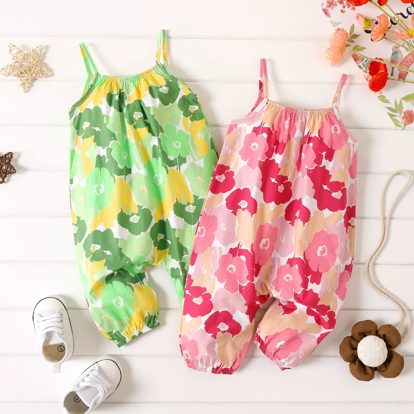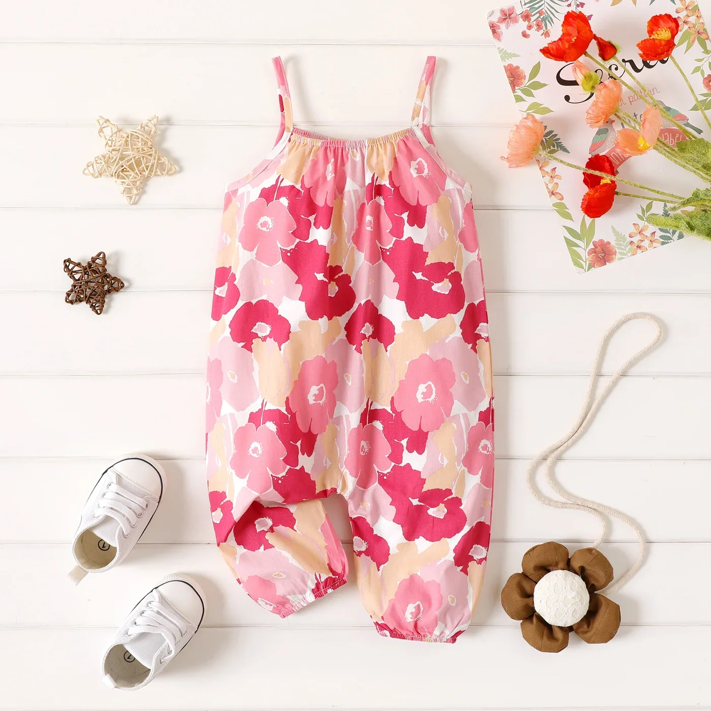 Home Uncategorized PatPat 100% Cotton Baby Girl All Over Floral Print Cami Jumpsuit Suitable for Summer Season Soft and Comfortable