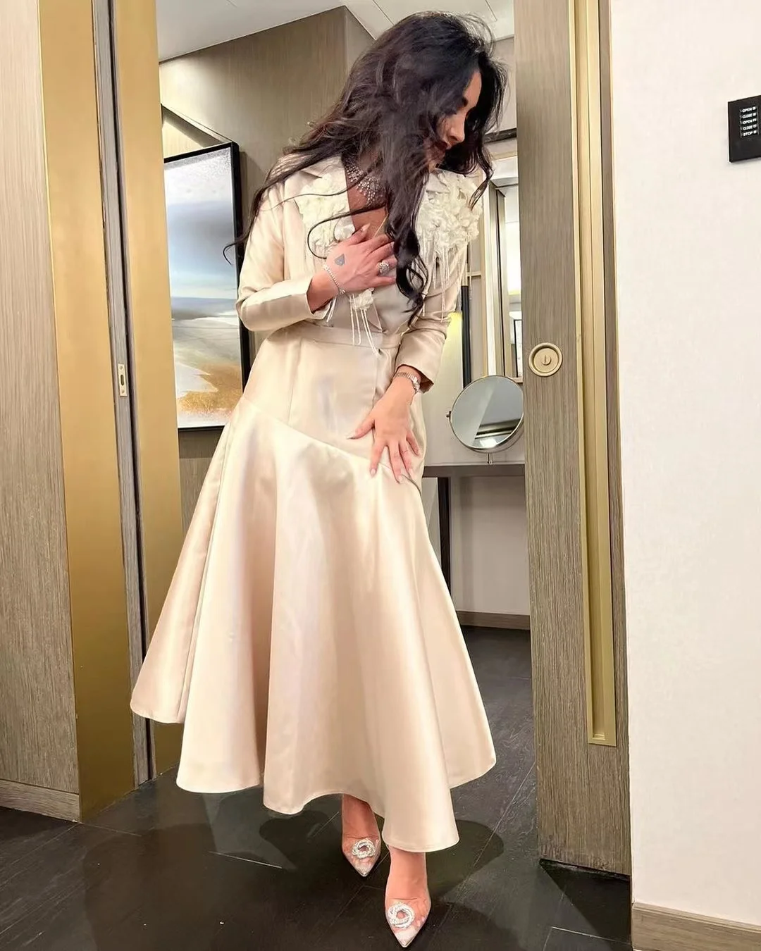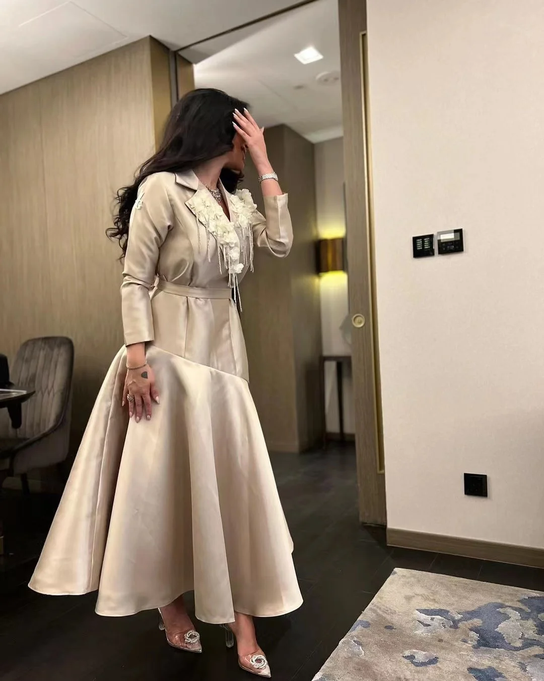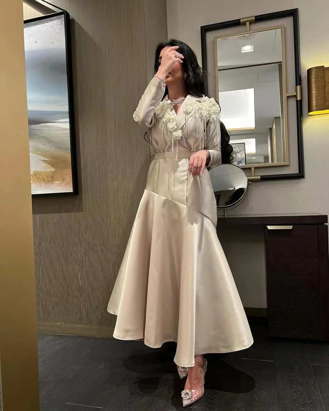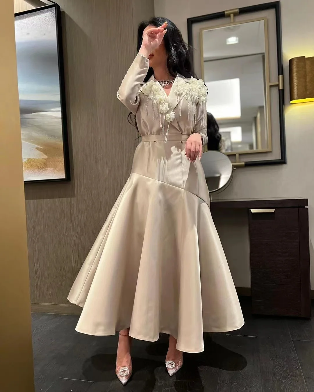 Uncategorized VD Saudi Arabia Women Wear Lapel V Neck Handmade Flowers Prom Dresses Long Sleeves Birthday Party Special Occasion Vestidos Des affiliatedstore - March 23, 2024 0 Price: [price_with_discount]