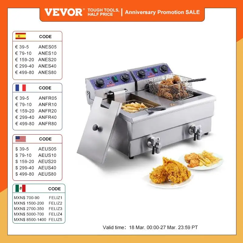 VEVOR  Electric Deep Fryer w/Dual Removable Tanks 12L 5000W Commercial Countertop  Fryer for Chicken French Fries Frying Chips