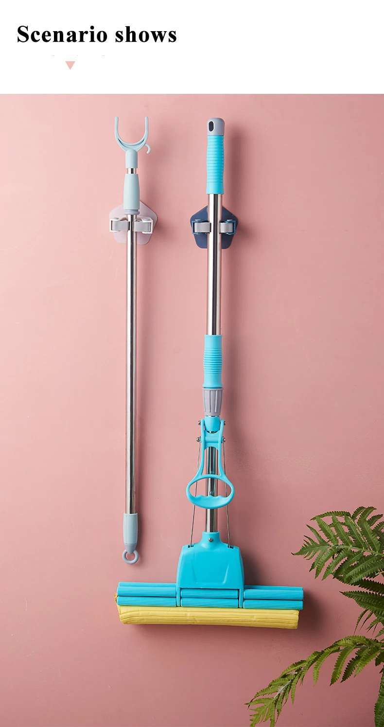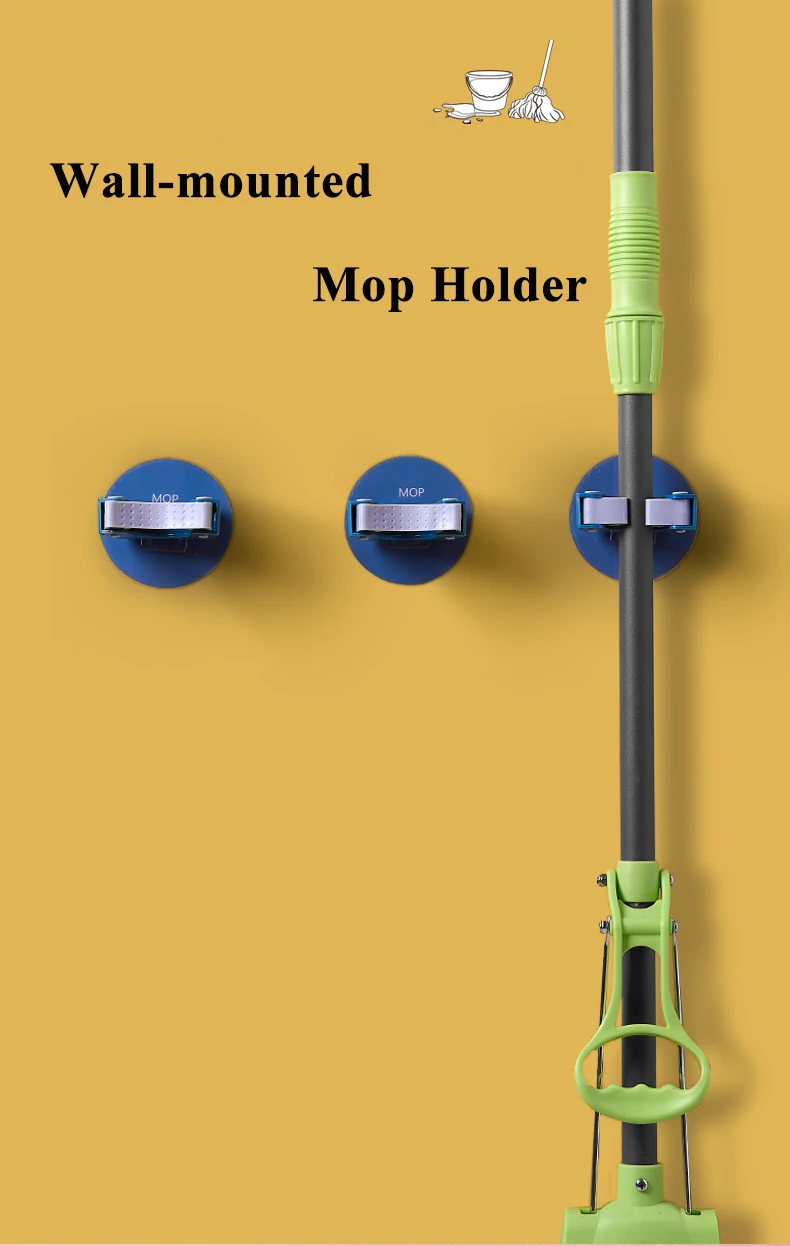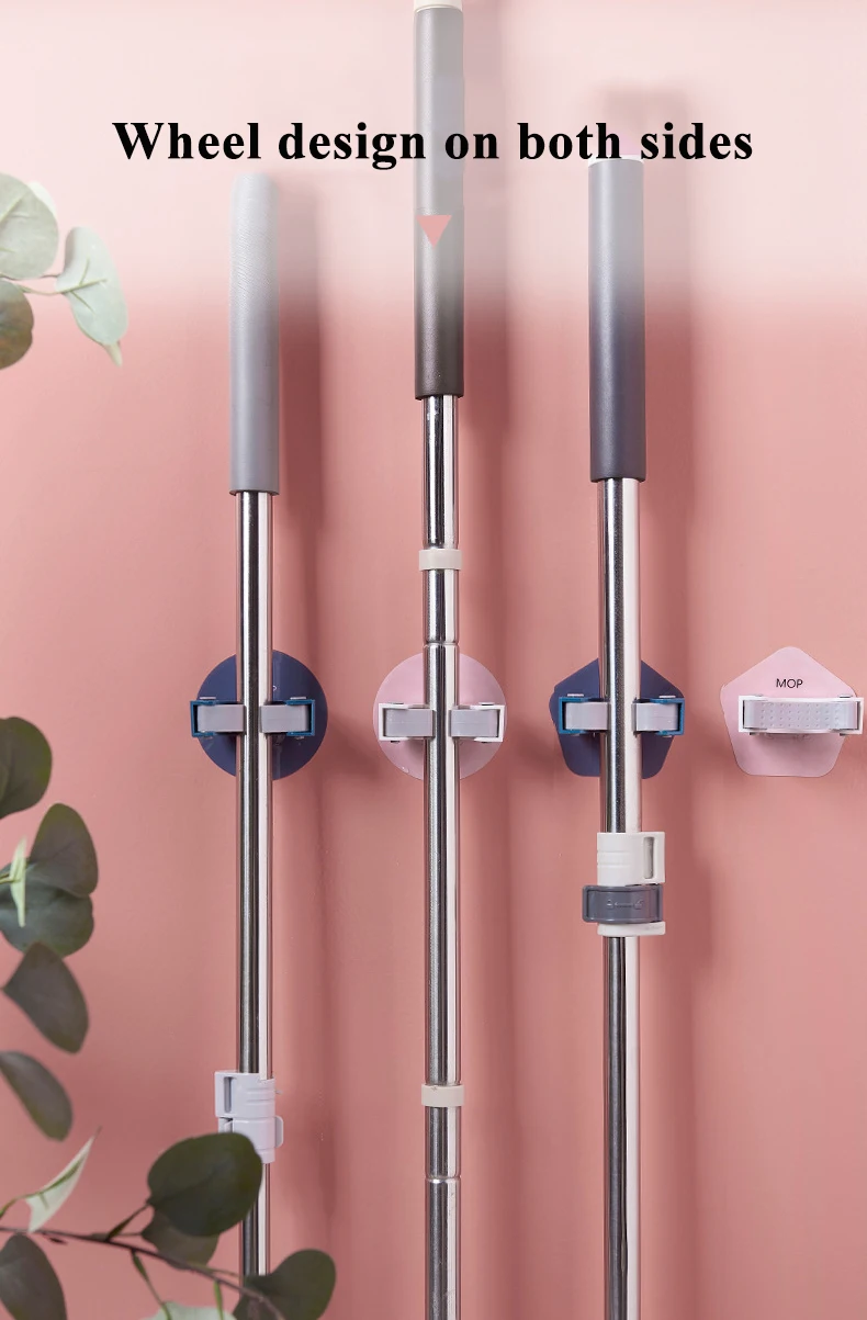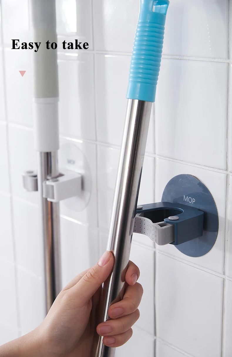 WIKHOSTAR Wall Mounted Mop Holder Brush Broom Hanger Home Mop Organizer Kitchen Bathroom Storage Rack Suction Hanging Pipe Hooks