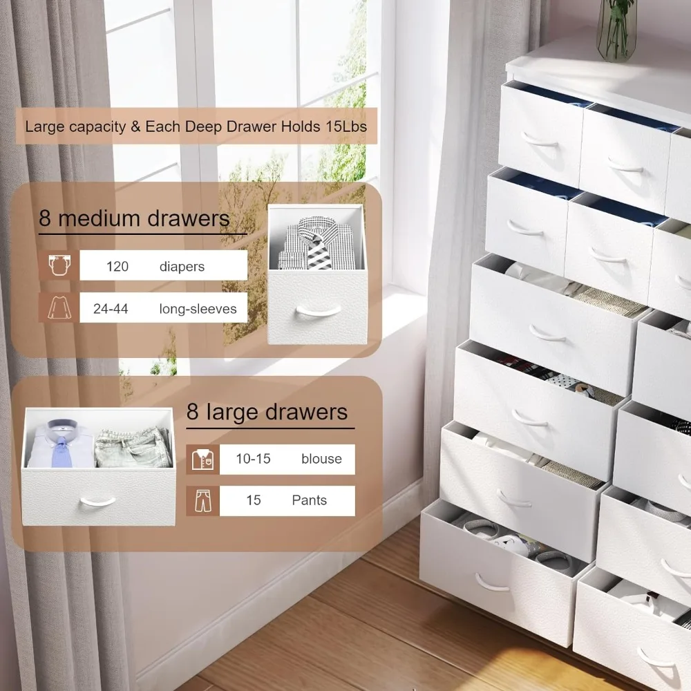 • [2 Sizes Drawers for Sorted Storage]  Chest of Drawers Designed with 16 individually collapsible drawers, together with 8 drawers for medium dimension gadgets and eight massive dimension drawers for Large dimension gadgets.Keep your room clear and tidy on a regular basis.