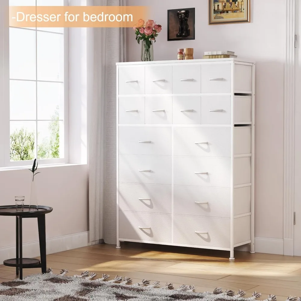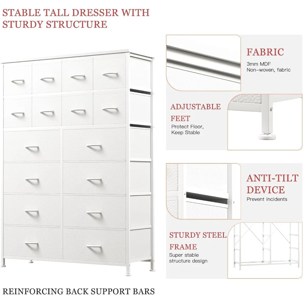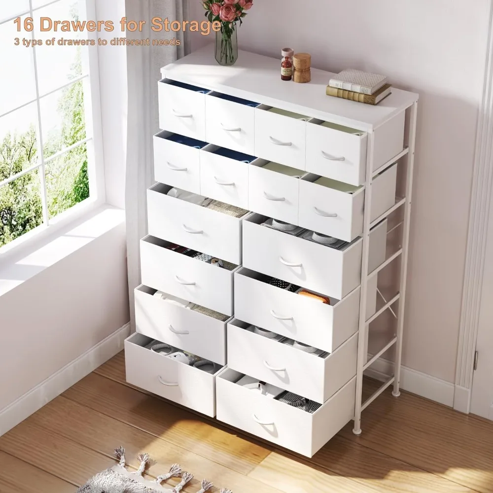 Wood Top Dresser Tall Dresser for Bedroom With16 Dresser Chest of Drawers Dressing Table Steel Frame Closet Dressers Furniture