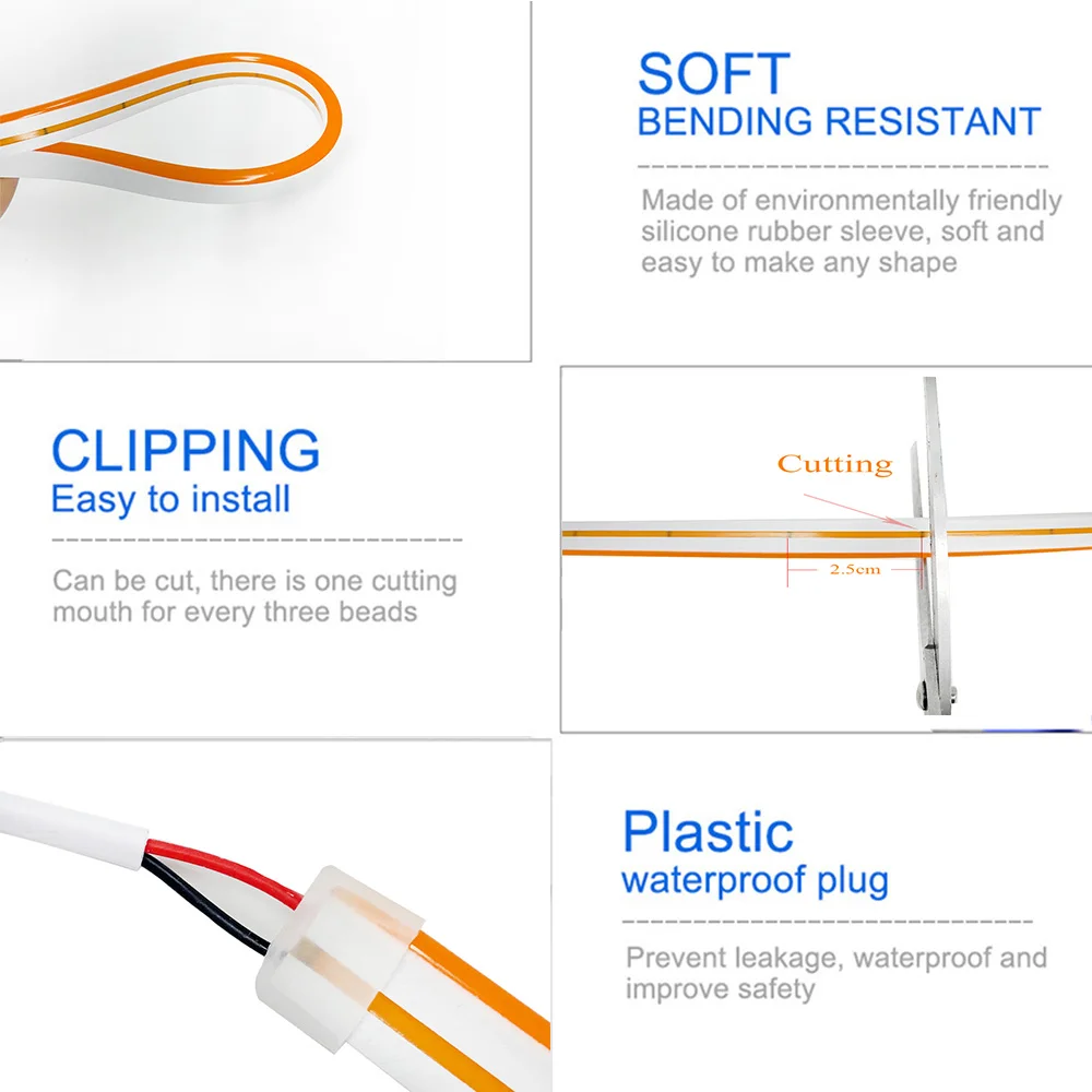 12V Flexible Led Neon Strip Lights With DC Connector Outdoor Waterproof Christmas Living Gaming Room Decor Home Decoration Lamp