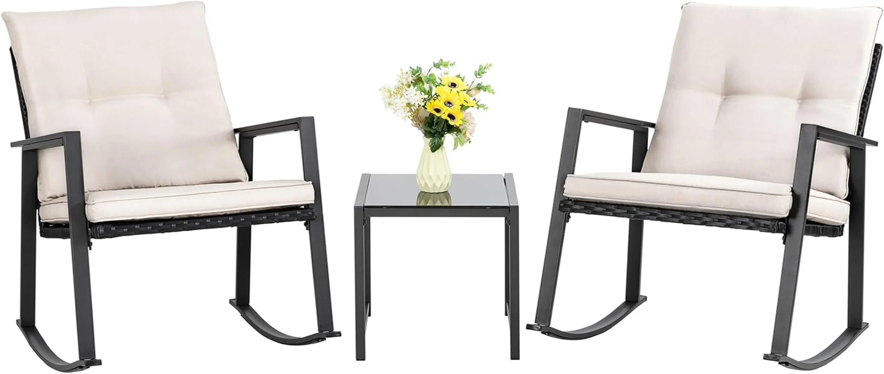 Set contains: 2×Rocking Chairs, 2×Back Cushions, 2×Seat Cushions, 1×Coffee Table