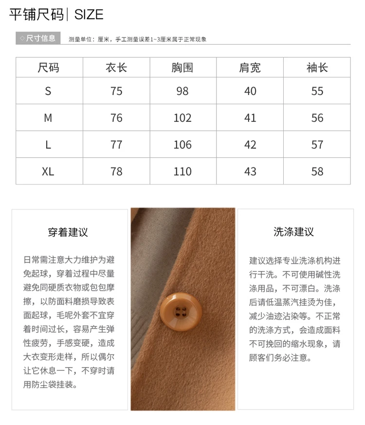 SCode:Bust98cm,Coat Length75cm,Sleeve Length55cm,Shoulder Width40cm,Recommended Weight40kg-45kg。