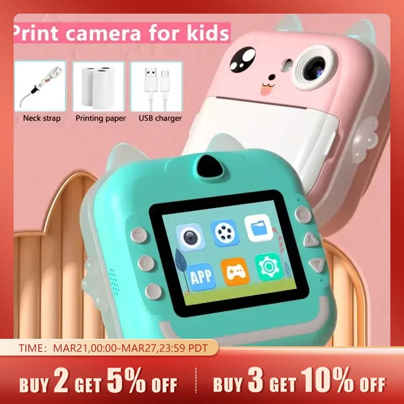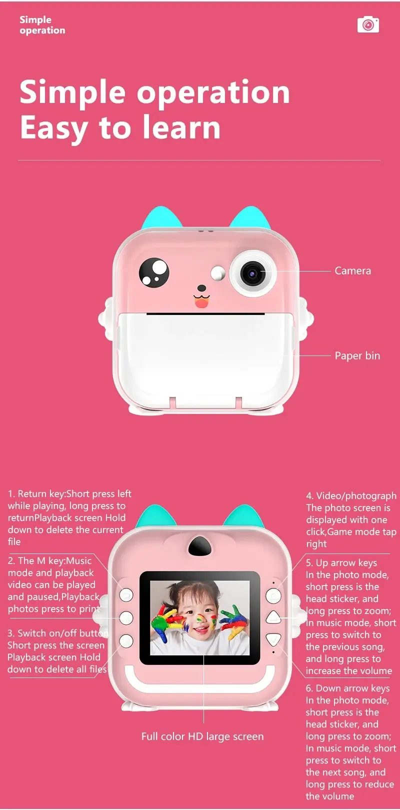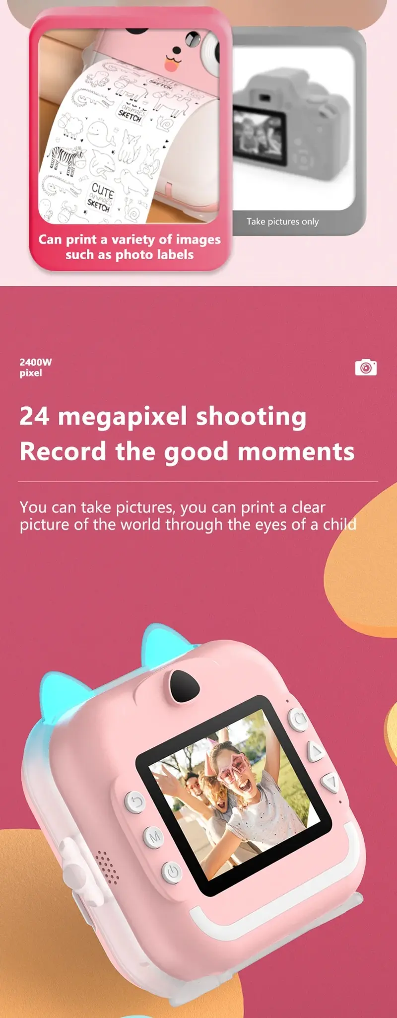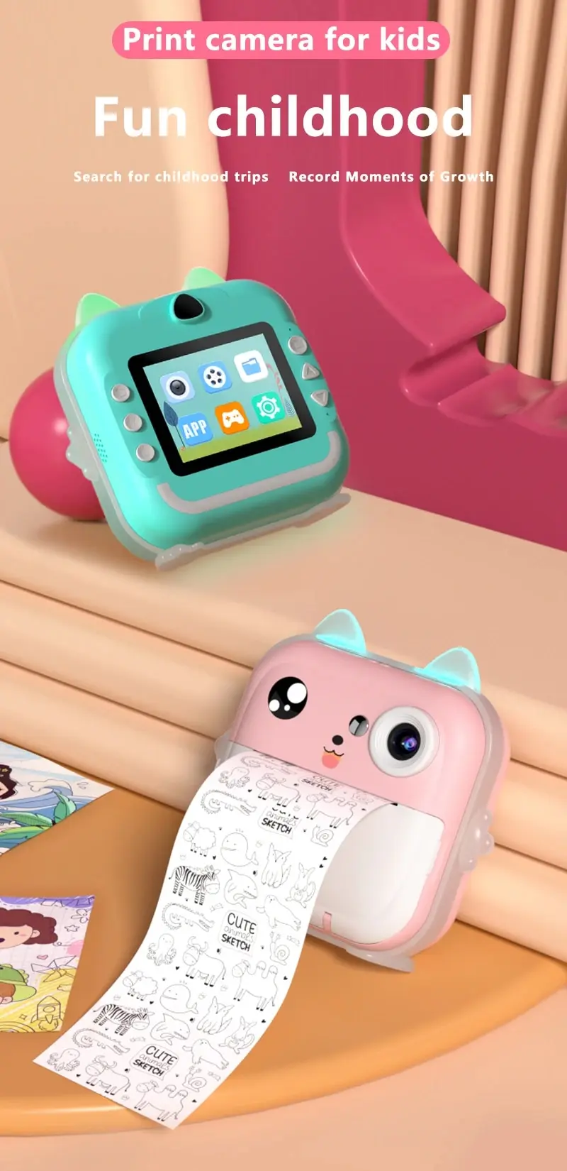 Children Polaroid Kids Camera Instant Print Mini Digital Video Camera for Kids 1080P HD Screen Outdoor Toy Print Thermal Paper