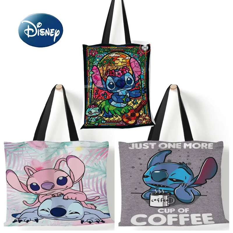 Disney Stitch Large Capacity Shopping Bags Tote Bags Anime Lilo and Stitch Women’s Canvas Handbags Girls Gifts 35x40cm