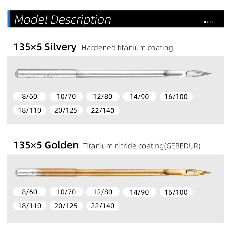 These needles additionally cross to those completely different needle methods : 134, 134R, 135X5, 135X7, 1955, 797, DPX5, DPX7, DPX134, SY1901, SY1905, SY1955