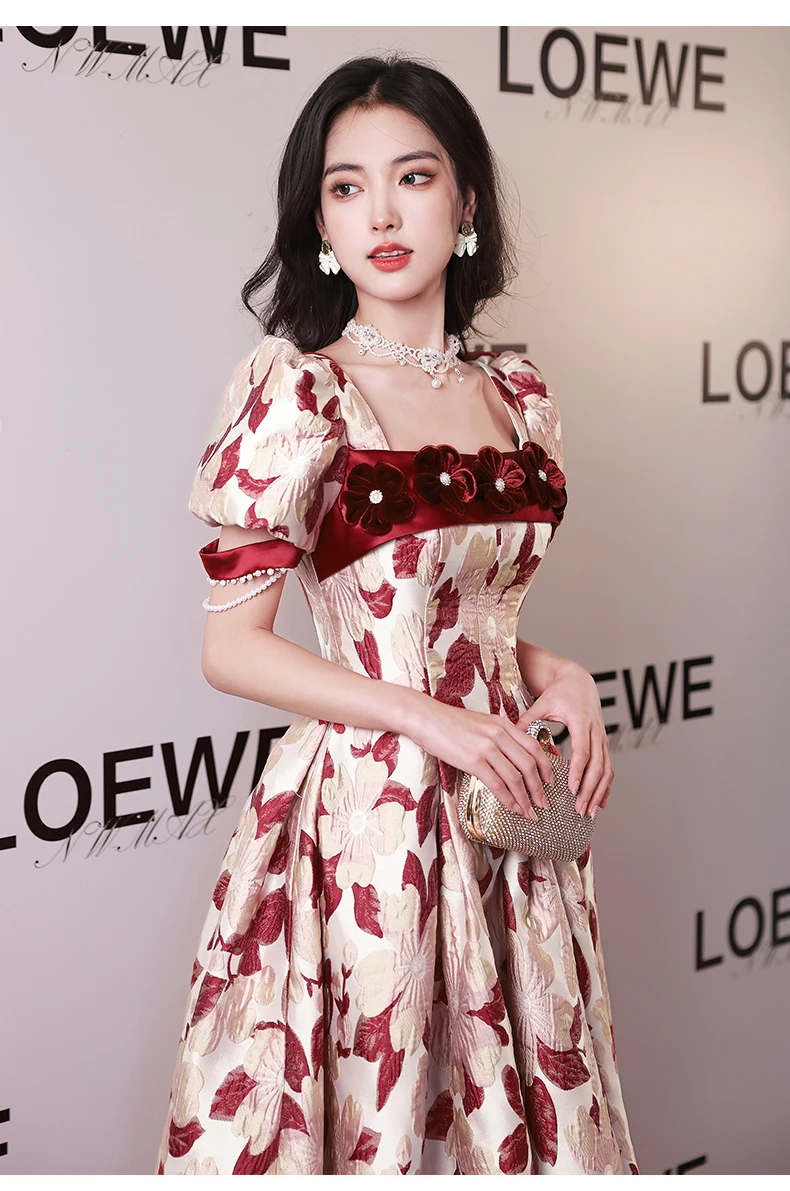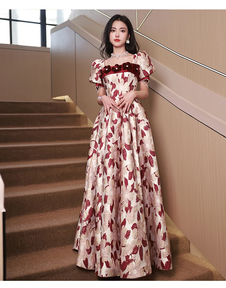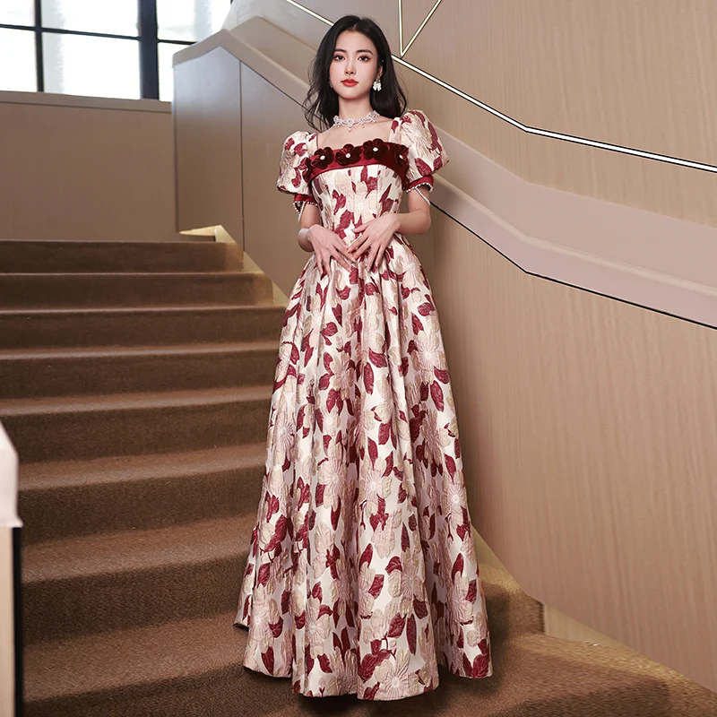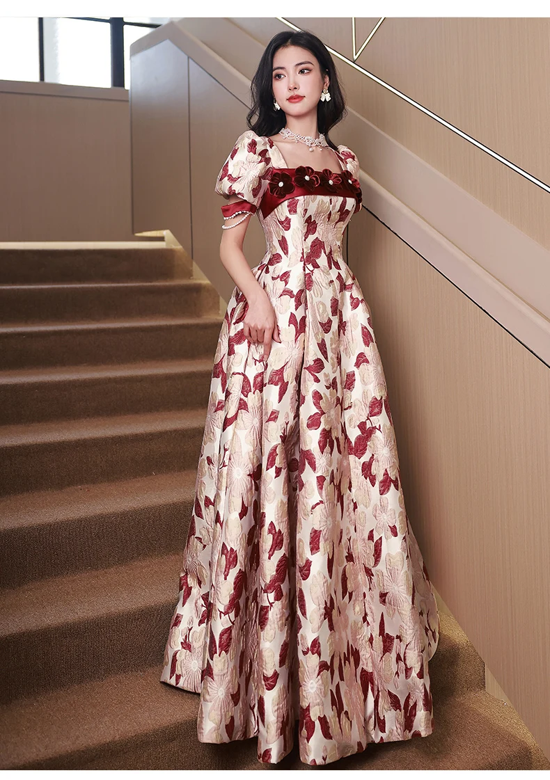 Home Uncategorized Jacquard Satin Prom Dresses 2023 Elegant Square Neck A-Line Floor-Length Long Women Special Occasion Dresses For Wedding